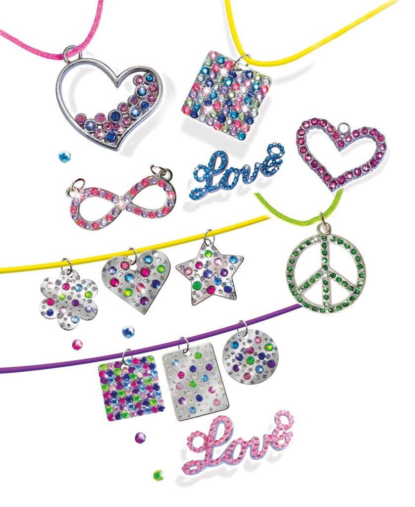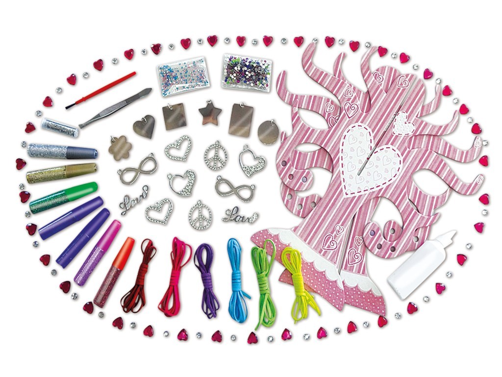 Výtvarná sada určená zejména všem princeznám a parádnicím, které touží po vlastnoručně vyrobeném šperku. Nechejte děti zábavně zdokonalovat své dovednosti a sestavovat šperky dle přiloženého návodu, nebo za použití vlastní fantazie. S pomocí potřeb dodávaných v sadě je to tak snadné! Sada obsahuje: 16 kovových štítků různých tvarů, 6 barevných provázků ze syntetické kůže, více než 650 kamínků, 8 lahviček se třpytkami, 1 lahvičku lepidla, štětec, pinzetu a kartonový šperkový strom (24x23,5 cm). Hlavní vlastnosti: rozvíjí kreativitu a vyjadřovací schopnostipraktické balení