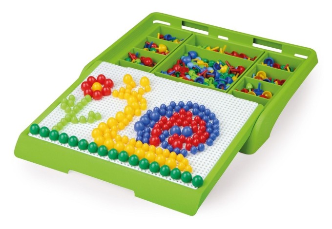 Přenosný úložný kufřík s vysouvacími panoramatickými deskami pro vkládání kolíčků, slouží zároveň k uložení kolíčků. Vytvářejte pestré obrázky vkládáním kolíčků do děrované desky. Pomocí mozaiky mohou děti rozvíjet svou fantazii, soustředění a jemnou motoriku. Souprava obsahuje 300ks barevných kolíčků - 10mm a 100ks barevných kolíčků - 15mm. Vyrobeno z nezávadného a odolného plastu. Hlavní vlastnosti: deska o rozměrech 30×4,5x26 cm 400 kolíčků dohromadypraktické balení i uložení kolíčků