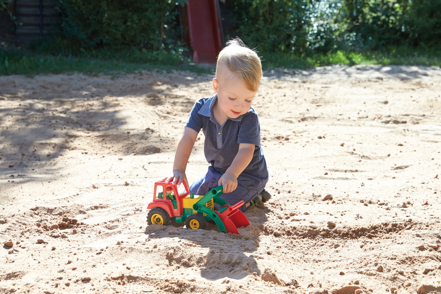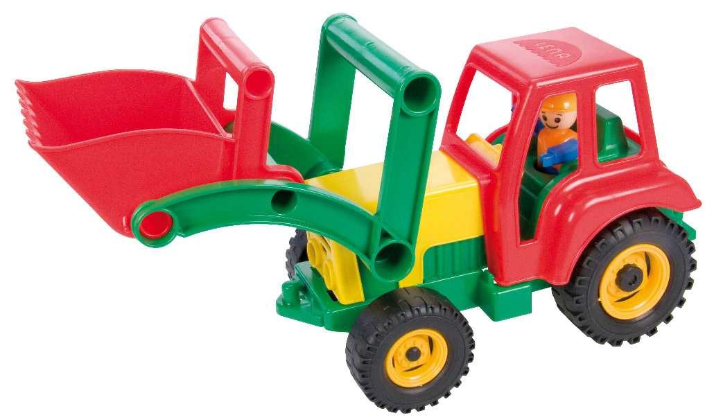 Traktor se lžící z kvalitního plastu a velmi pevnou stavbou. Plně mechanicky funkční. Obsahuje odklopitelnou kabinu s panáčkem.  Hlavní vlastnosti: splňuje požadavky EU na bezpečnost hračekplně mechanicky funkčnívyrobeno z kvalitního, odolného plastus aktivním panáčkem