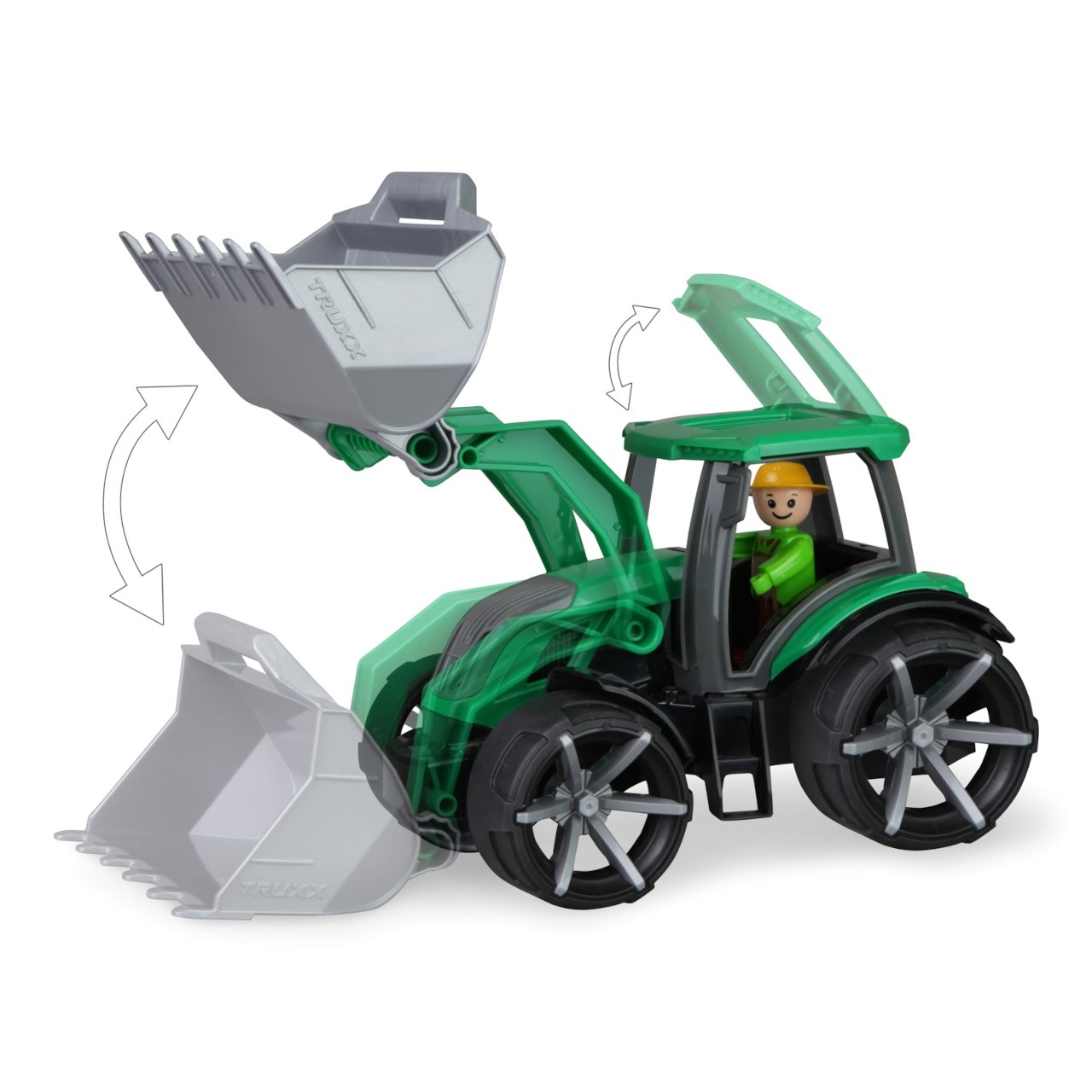 Atraktivní traktor ze série TRUXX 2 je velmi pevný a odolný, vhodný i ke hraní venku, na pískovišti. Je vybaven figurkou usměvavého řidiče a díky odklopné střeše je prostor kabiny snadno přístupný hrám. Funkční lopata je pro snadnou manipulaci vybavena madlem. Hračka je vyrobena z nezávadného plastu, dodávána v pestrobarevné krabici s průhledem. Hlavní vlastnosti:figurka řidiče, přístupná kabinafunkční, snadno ovladatelná lopatapevné a odolné provedení