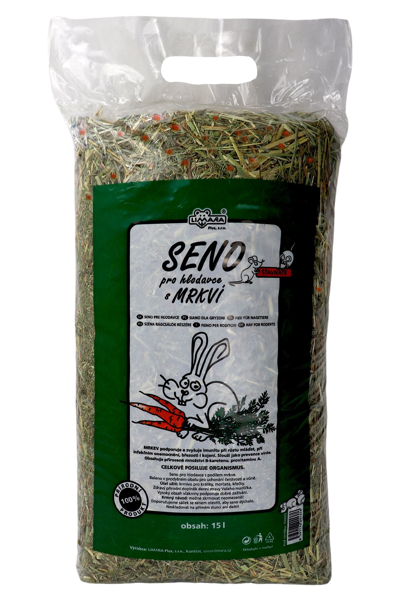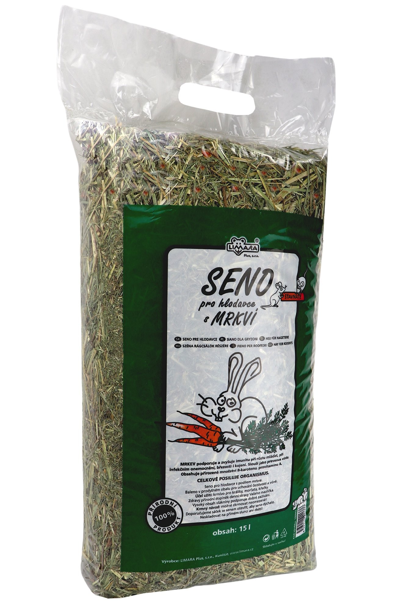 Seno pre hlodavce s podielom mrkvy. Celý popis