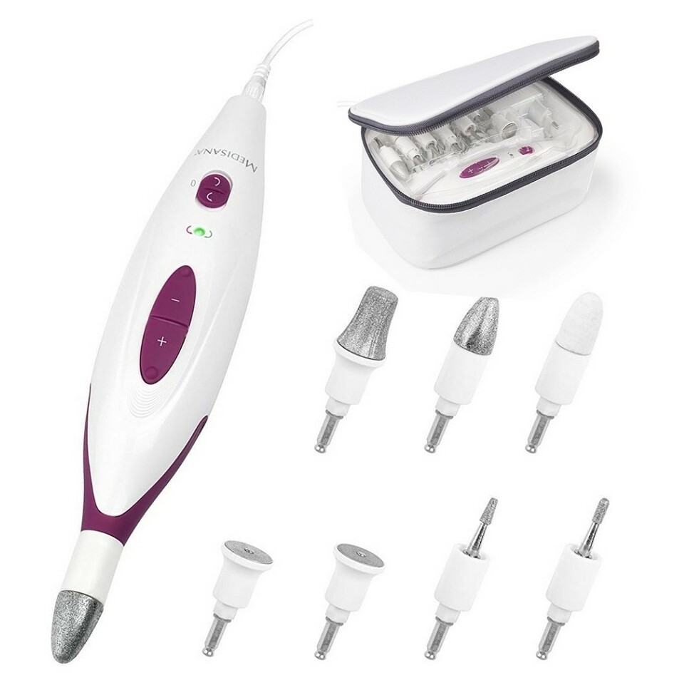 Brúska na manikúru a pedikúru so 7 nadstavcami je ideálnym pomocníkom pri ošetrení zarastených, silných a stvrdnutých nechtov, na ošetrenie zrohovatenej kože, mozoľov a okrajov kurích ôk. Vďaka vymeniteľným nástavcom ošetríte rôzne časti Vášho tela. Brúska je určená pre domáce použitie. Zafírové nástavce majú dlhú životnosť. Prístroj disponuje 2 smery otáčania, a 2 rýchlosťami.