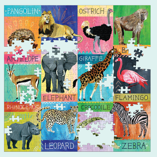 500dílné rodinné puzzle koláže Safari obsahuje 12 zvířat ze safari včetně lva, zebry a plameňáka. Puzzle je baleno v pevných krabicích s matným povrchem. Umělkyně Jessica Swift. Hlavní vlastnosti: Obsahuje 500 dílkůPotištěno netoxickými inkoustyPrémiová kvalita puzzleJednotlivé dílky do sebe přesně pasujíRozvíjí logické myšlení a motoriku