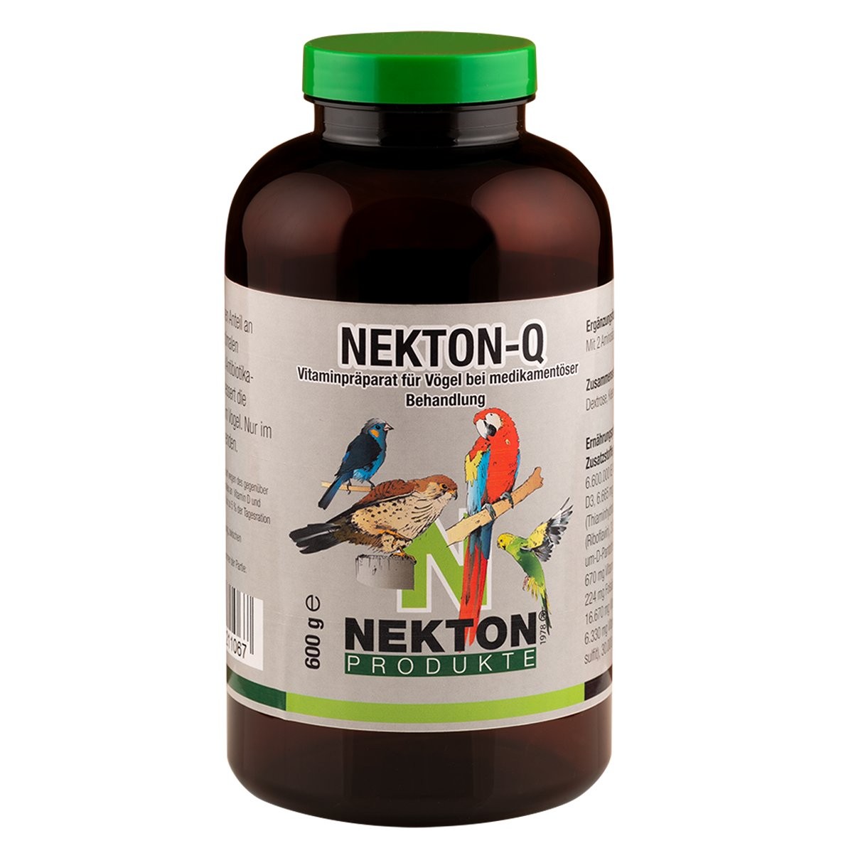 NEKTON Q podporuje organizmus vtákov, najmä tých, ktorí sú liečení antibiotikami alebo sulfónamidmi, ako napr. pri chorobách alebo v období karantény. Okrem iného obsahuje vit. A, E a K, ktoré okrem iných funkcií spevňujú bunkové steny, regulujú bunkový metabolizmus a napomáhajú celkovému zotaveniu tela. Toto je pre vtáky veľmi dôležité, obzvlášť vtedy, ak je v ich organizme v rámci liečby prítomných mnoho cudzích látok. Počas užívania by nemali byť podávané žiadne ďalšie vitamínové doplnky.