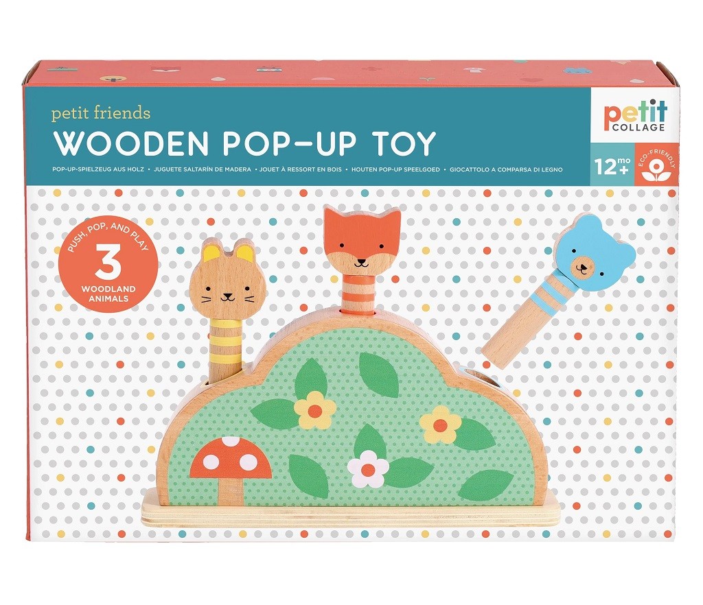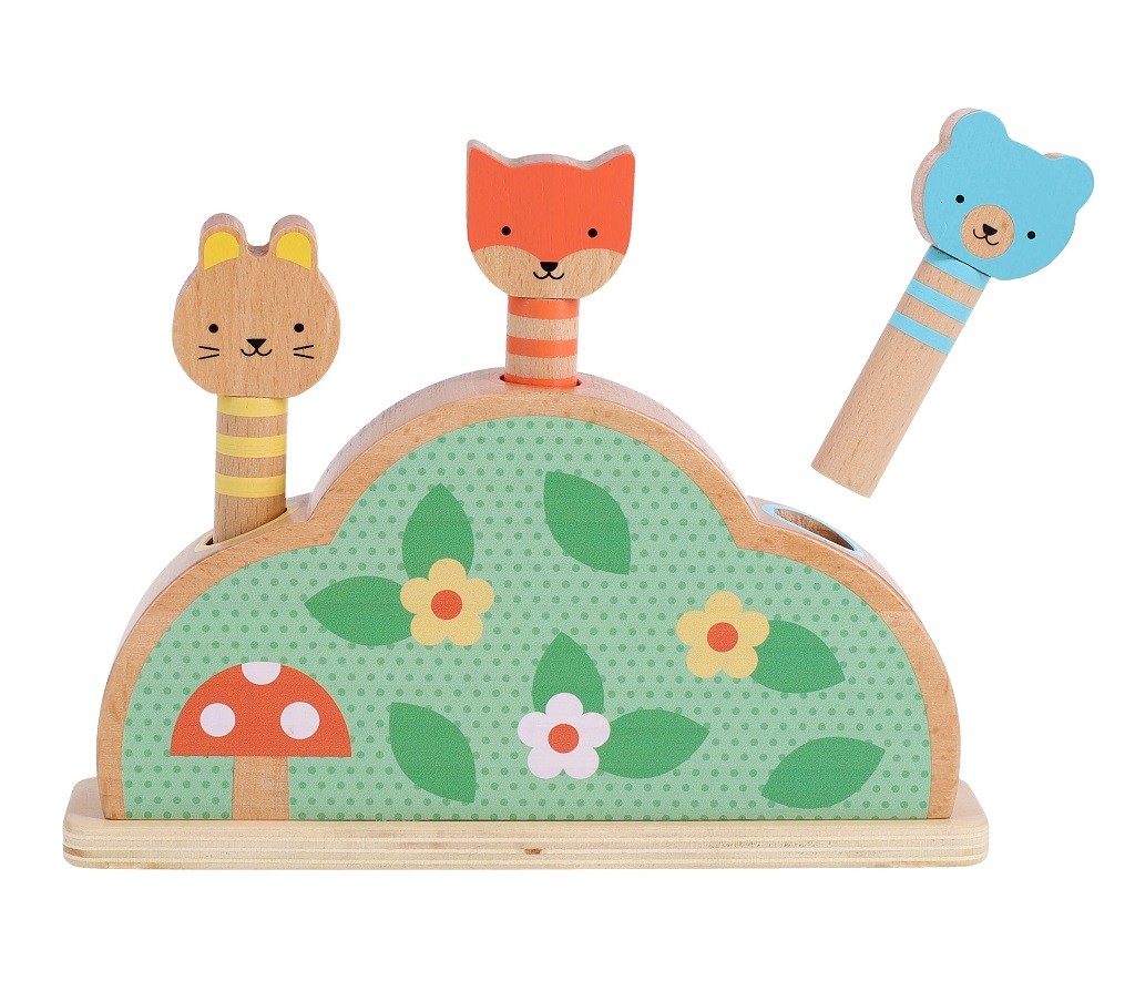 Tlačte, mačkejte a zažijte úžasnou zábavu s touto robustní dřevěnou hračkou. Děti si tuto hru zamilují! Obsahuje tři postavičky kolíčků a základnu odrazového můstku. Zvířátka jsou nabitá pružinou a připravena na vyskočení ze svého pelíšku. Hra rozvíjí jemnou motoriku, koordinaci rukou a očí, rozpoznávání barev a tvarů a rozvíjí porozumění příčinám a následkům. Vyskakovací hračka je vyrobena s krásnými ilustracemi v jemných pastelových barvách ze dřeva s certifikací FSC® a potištěna netoxickými inkousty na vodní bázi. Obal je vyroben ze 75 % z recyklovaných materiálů, šetrný k životnímu prostředí, potištěn rostlinnými inkousty. Je perfektním dárkem pro nejmenší. Hlavní vlastnosti: dřevěná otočná hračkaobsahuje 3 kostky z masivního dřevavyrobeno z FSC® certifikovaného dřeva a potištěno netoxickou vodou ředitelnou barvouvhodné od 1+