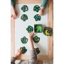 Trénujte svůj postřeh s dinosaury. Tato karetní hra nabízí až pět variant pravidel a je plná barevných ilustrací s tematikou dinosaurů. Jistě si ji rychle oblíbíte také pro její skladnost, je tak vhodná ke hře doma i na cestách. Baleno v kovové krabičce bez použití plastu. Hlavní vlastnosti pro 2–6 hráčů5 variant pravidelpraktické balení Návod ke hře: Základní varianta:Každému hráči rozdejte jednu kartu lícem dolů. Balíček otočený lícem nahoru umístěte mezi hráče. Na smluvený signál hráči otočí své karty. Hráč, který první nahlásí shodný symbol na své kartě a na kartě v balíčku, si kartu z balíčku vezme. Takto je balíček nakonec dobrán a vítězem se stává hráč s největším počtem karet. Obrácená varianta:Rozdejte mezi hráče karty tak, aby všichni drželi stejný počet karet a jedna karta zbyla. Hráči své karty v balíčku položí před sebe lícem dolů. Zbývající kartu, otočenou lícem nahoru, položte mezi hráče. Na smluvený signál hráči otočí svrchní kartu svého balíčku. Kdo jako první nahlásí symbol shodný na své kartě a kartě mezi hráči, svou kartu mezi hráče na vznikající kupku přiloží a otočí další svou svrchní kartu. Takto hra pokračuje, dokud nezůstane poslední hráč s kartami, a stává se tak poraženým. Hráč, který se karet zbavil jako první, je vítězem. Skupinová varianta:Hraje se na kola. V každém kole je před jednotlivce rozdáno po jedné kartě lícem dolů. Na smluvený signál hráči svou kartu otočí, a který z nich pojmenuje a nahlásí symbol shodný se symbolem na kartě jiného hráče, svou kartu mu předá. Takto hra pokračuje, dokud jeden hráč nepřijme všechny karty v jednotlivém kole rozdané. Cílem hry je zbavovat se karet, hráč, který v součtu kol přijal nejvíce karet, je poražený.
