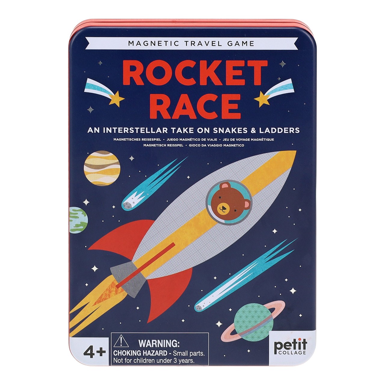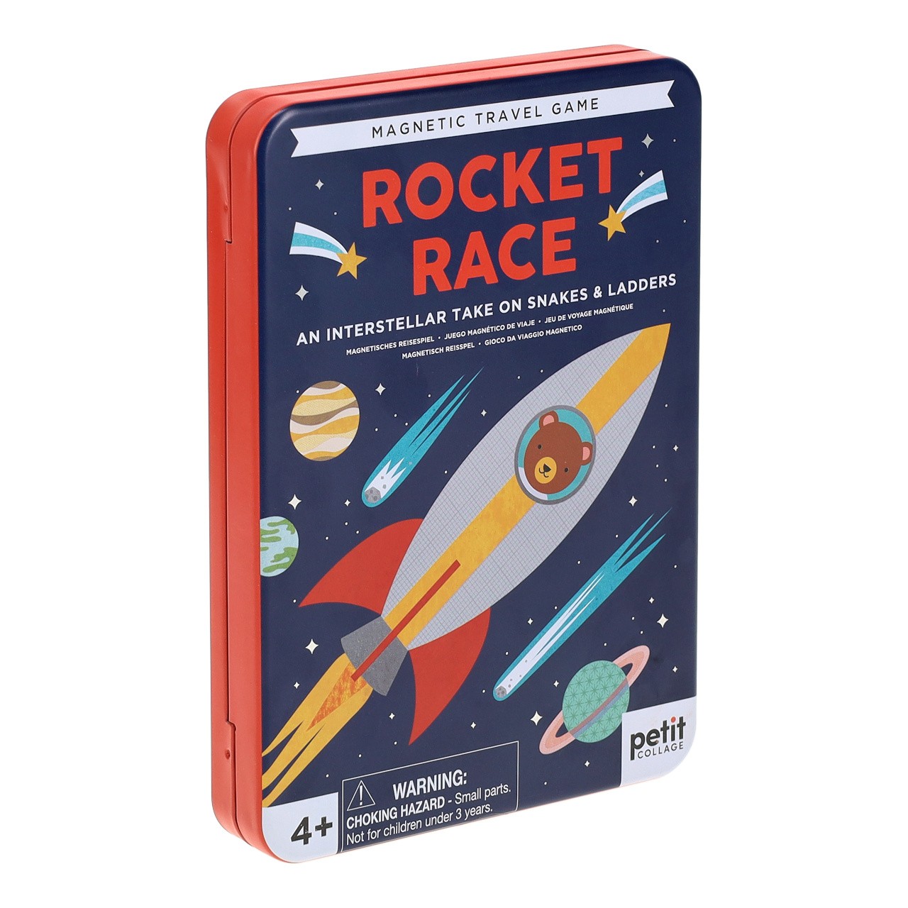 Odstartuje tento vesmírný závod! Zábavná hra v kovové krabičce plná veselých ilustrací. Hra je vesmírnou verzí Hadů a žebříků. Střídejte se v otáčení kolečka s šipkou, to ukazuje, o kolik polí se posunete. Pokud se zastavíte na políčku s hořícím palivem rakety, posuňte se vzhůru na tělo rakety. Snažte se vyhnout ohonu komety, pokud se na takovém poli zastavíte, padáte dolů, na její jádro. Zabaleno v recyklovatelné kovové krabičce, otevírání na panty. Po otevření odhalíte ilustrovanou hrací desku, 4 magnetické dílky, 1 kolečko s šipkou, návod hry. Vhodné pro 2-4 hráče od 4 let. Hlavní vlastnosti: cestovní magnetická hratrénuje trpělivostkrabička slouží jako hrací plocha