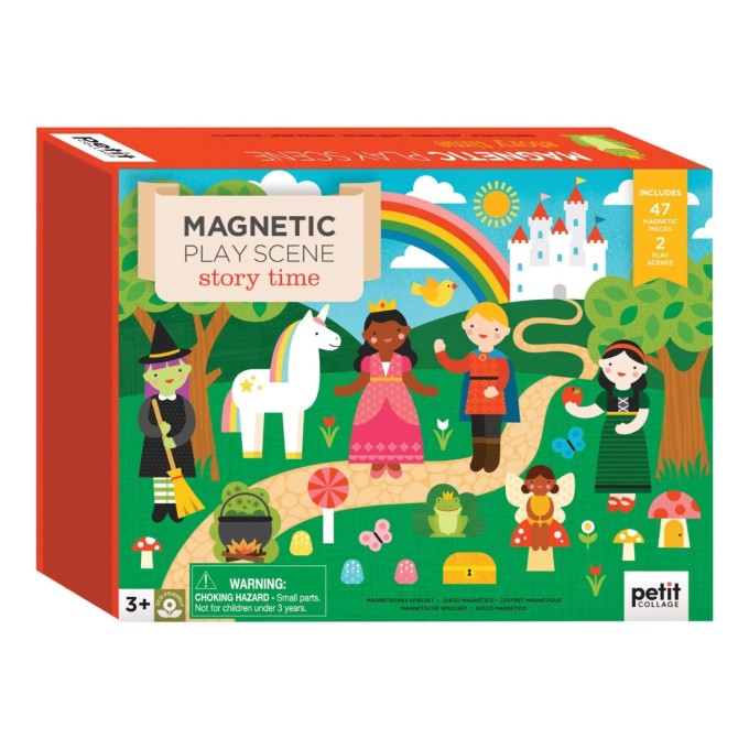 Tato přenosná sada her obsahuje 47 magnetických dílků a dvě magnetické tabulky, z nichž si můžete vybrat. Lze použít jako divadélko. Magnetickou scénku můžete i postavit díky zarážkám v krabici. Tvořte vlastní pohádkové příběhy ve dne nebo v noci. Můžete si vytvořit nekonečné kombinace scén. Praktická skládácí krabička, která napomáhá rychlému uklizení dílků a uložení na poličku. Robustní konstrukce je vyrobena tak, aby měla dlouhou životnost. Hlavní vlastnosti: 47 magnetických dílků 2 magnetické tabulkyvyrobeno z recyklovaných materiálů potištěno rostlinnými inkousty