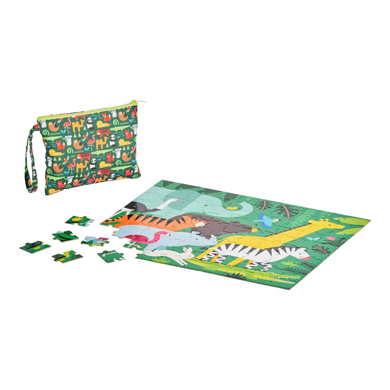 Dejte dohromady tento zvěřinec a zjistěte, kolik zvířat z džungle najdete. Toto krásné puzzle s 49 dílky je oboustranné, má 2 jedinečné designy s přátelskými zvířátky. Dvojitá zábava! Je vhodné ke hře doma i na cestách. Obrázky jsou pouze ilustrační, počet vyobrazených dílků se může lišit. Hlavní vlastnosti: dvoustranné 49dílné puzzle s 2 designyúložný pytlík se zipem vyroben ze 100% recyklovaného polyesterunatištěno na FSC papírubaleno bez použití plastuperfektní na cesty   Značka a certifikát FSC® (Forest Stewardship Council) zaručuje, že dřevo, ze kterého byl produkt vyroben, nebylo vytěženo nelegálně a pochází z lesů obhospodařovaných šetrným či přírodě blízkým způsobem, ve kterém jsou dodržovány přísné environmentální a sociální požadavky. Značka FSC® na výrobku znamená, že svým nákupem pomáháte chránit lesy a podporujete šetrné, odpovědné či přírodě blízké hospodaření, díky kterému jsou naše lesy stabilnější, zdravější, mají přirozenou druhovou skladbu a lépe odolávají negativním následkům klimatických změn.