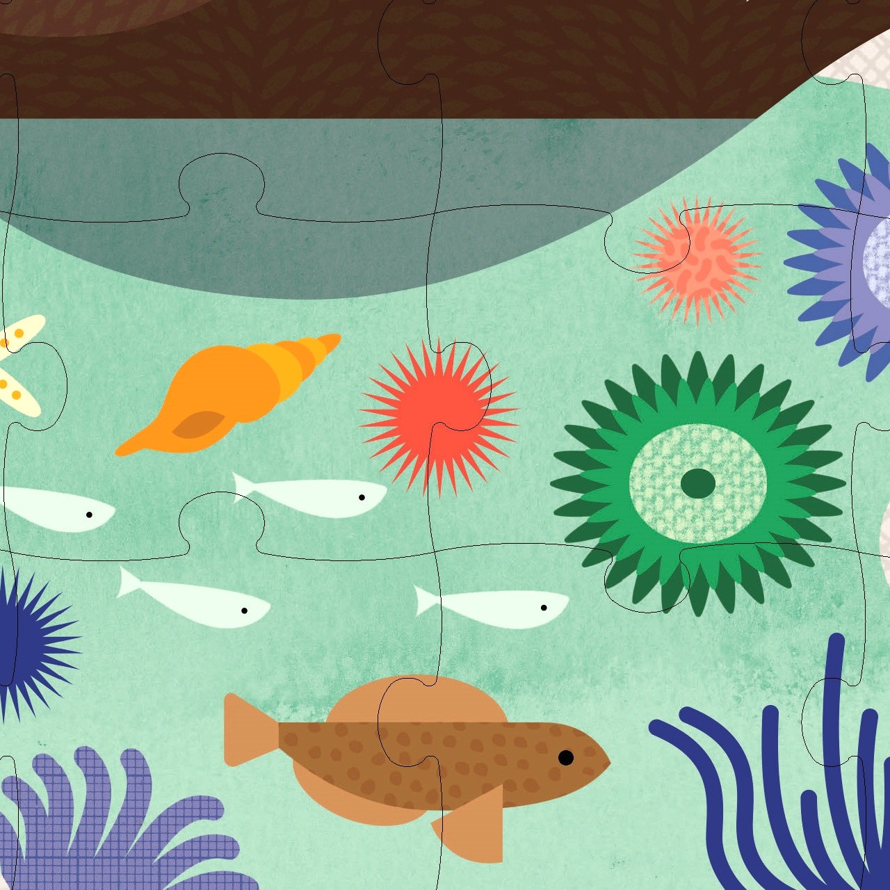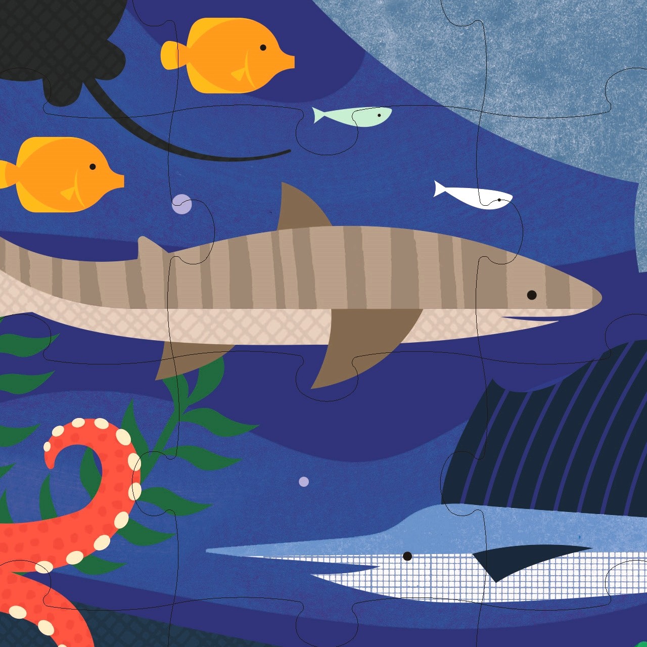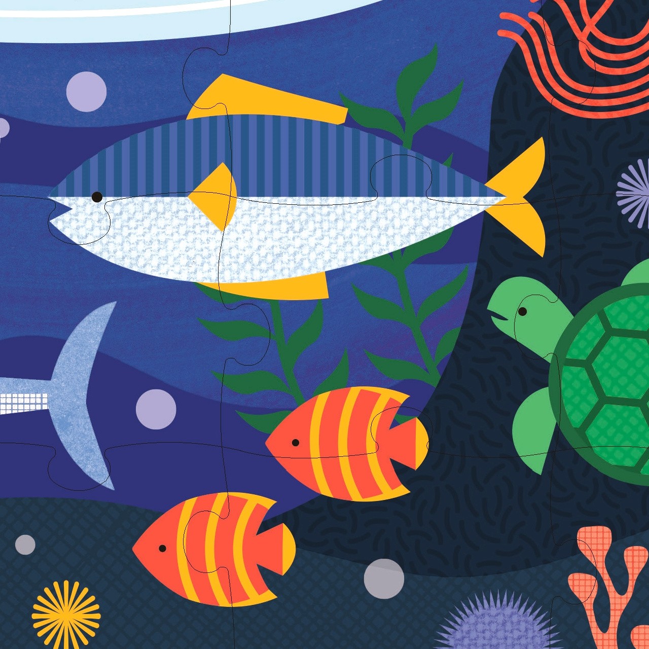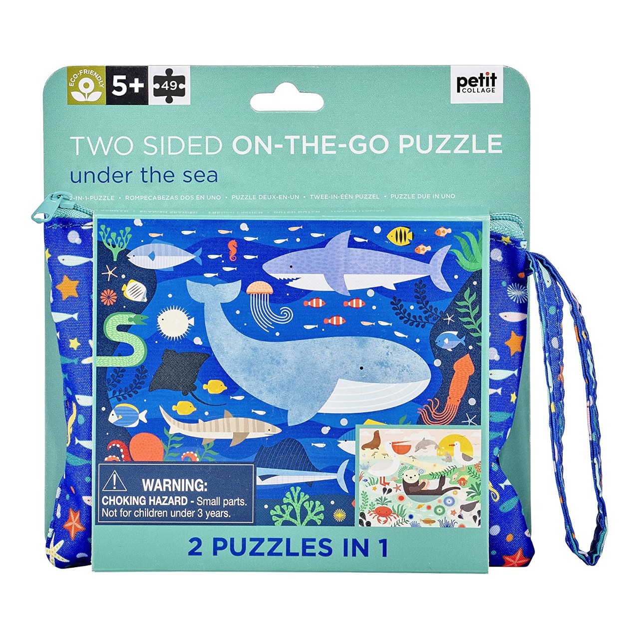 Podmořské puzzle má 49 dílků a je oboustranné. Kolik živočichů dokážete rozpoznat? Oboustranné puzzle má 2 unikátní designy, dvojitá zábava! Puzzle je zabaleno v pytlíku s poutkem z látky ze 100% recyklovaného polyesteru. Je tak vhodné i na cesty. Puzzle z FSC papíru je natištěno barvami vyrobenými ze zeleniny. Hlavní vlastnosti: oboustranné puzzlezabaleno v eko pytlíku s poutkempuzzle natištěno přírodními barvamivhodné na doma i na cestybaleno bez použití plastuvhodné od 5 let    Značka a certifikát FSC® (Forest Stewardship Council) zaručuje, že dřevo, ze kterého byl produkt vyroben, nebylo vytěženo nelegálně a pochází z lesů obhospodařovaných šetrným či přírodě blízkým způsobem, ve kterém jsou dodržovány přísné environmentální a sociální požadavky. Značka FSC® na výrobku znamená, že svým nákupem pomáháte chránit lesy a podporujete šetrné, odpovědné či přírodě blízké hospodaření, díky kterému jsou naše lesy stabilnější, zdravější, mají přirozenou druhovou skladbu a lépe odolávají negativním následkům klimatických změn.