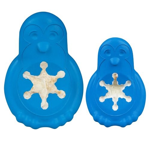 S hračkou PetSafe® Chilly Penguin doprajete svojmu psovi skvelú, chladenú pochúťku kedykoľvek. Naplňte stred hračky mrazivými pochúťkami, ako je ochutená voda, kurací vývar, jogurt alebo mokré krmivo pre psov. Umiestnite hračku na noc do mrazničky a váš pes bude mať lahodné mrazené potešenie, ktoré si budete môcť vychutnať nasledujúci deň. Zaoblená základňa dodáva hračke zábavné a nepredvídateľné kolísanie čo ešte zvýši zábavu pri maškrtení. Ak sa váš pes potrebuje dostať k lahodnej pochúťke rýchlejšie, skúste orezať okraje snehovej vločky. Po ich odrezaní už nie je cesty späť, preto odporúčame zastrihávať len po troche a potom skúšať.