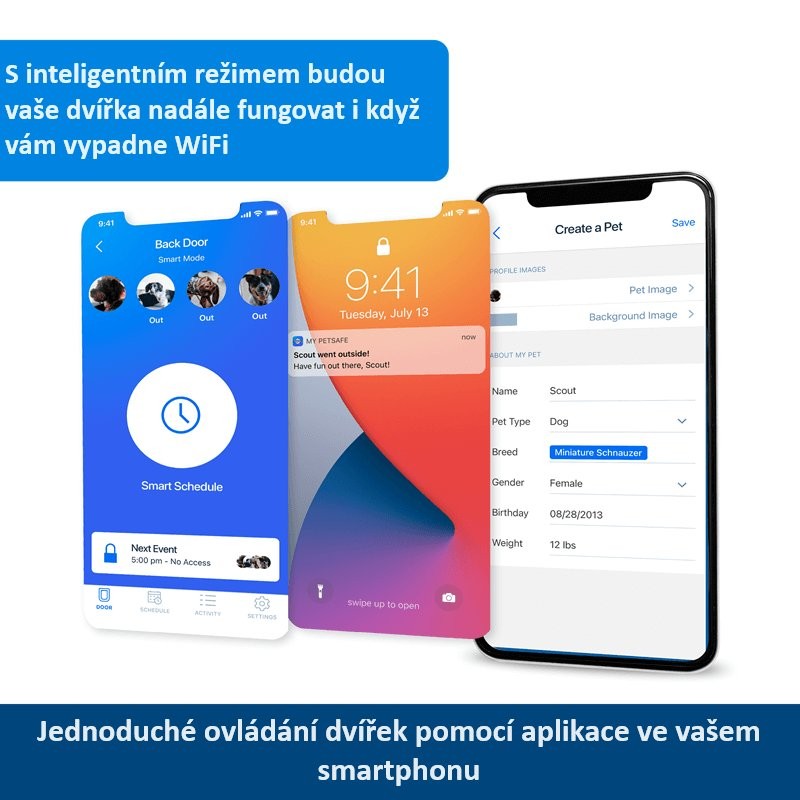 » Ovládanie cez telefón – dvierka pre domáce zvieratá s prepojením na aplikáciu v mobile, ktoré dávajú vašim miláčikom slobodu prichádzať a odchádzať