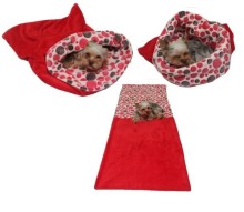 Marysa pelíšek 3v1 pro psy, srdíčka/červený, velikost XL