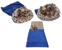 Marysa pelíšek 3v1 pro psy, modrý/hnědá kolečka, velikost XL