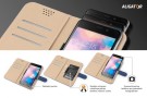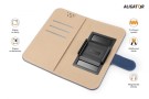 Dokonale propracovaný design, tenké provedení, přihrádky na kartu nebo vizitky, podélná kapsa na bankovky, zavírání pomocí magnetické přezky, snadné uchycení mobilního telefonu pomocí výsuvných čelistí z kvalitního plastu, které jsou určené pro opakované umístění telefonu.