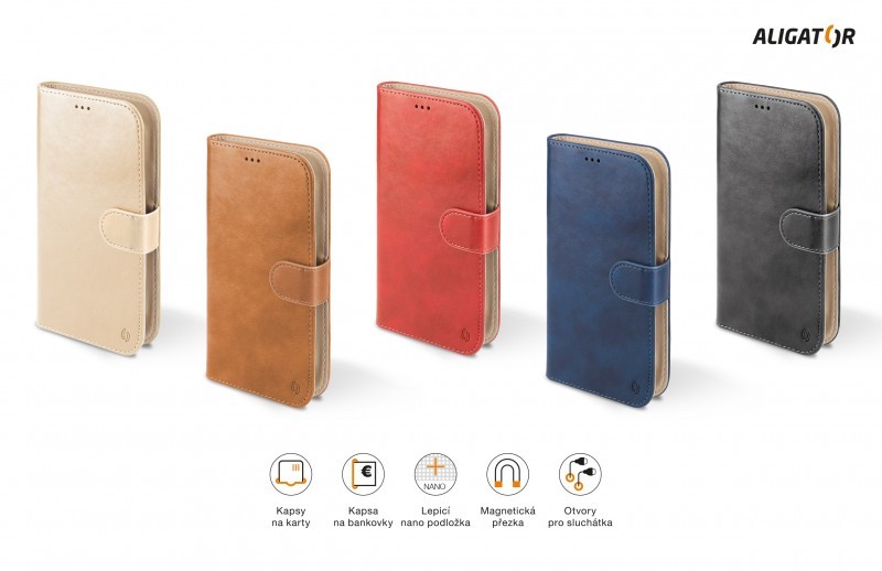 Dokonale propracovaný design, tenké provedení, přihrádka na kartu nebo vizitky, podélná kapsa na bankovky, zavírání pomocí magnetické přezky, snadné uchycení mobilního telefonu pomocí prémiové lepicí nano podložky, která je určena pro opakované umístění telefonu.