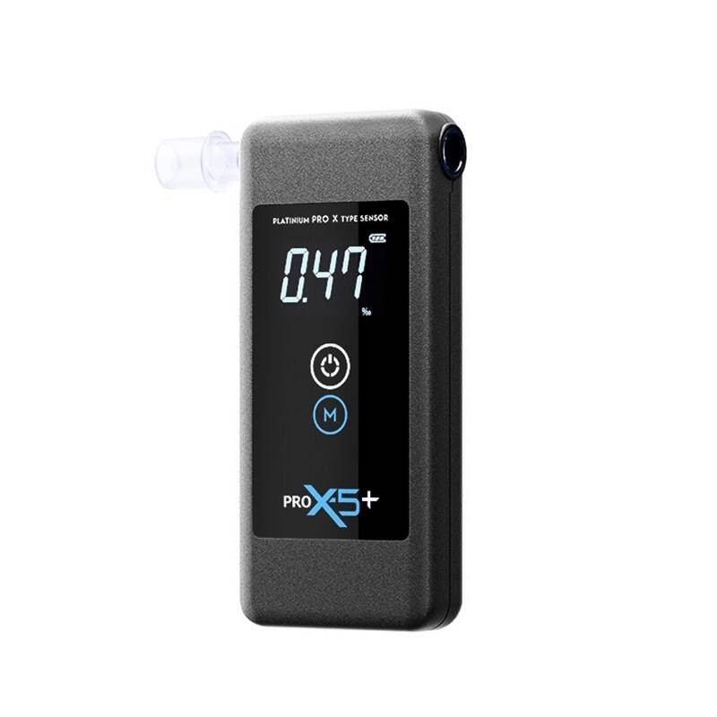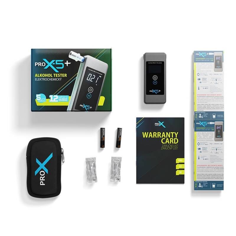 Alkoholtester PRO-X 5+ je určený na dychové testovanie alkoholu pomocou náustku. Po zapnutí sa zariadenie automaticky pripraví na meranie. Výsledok testu je signalizovaný vizuálne aj zvukovo. Po ukončení merania sa prístroj automaticky vypne. Vstavané počítadlo umožňuje sledovať celkový počet vykonaných testov.