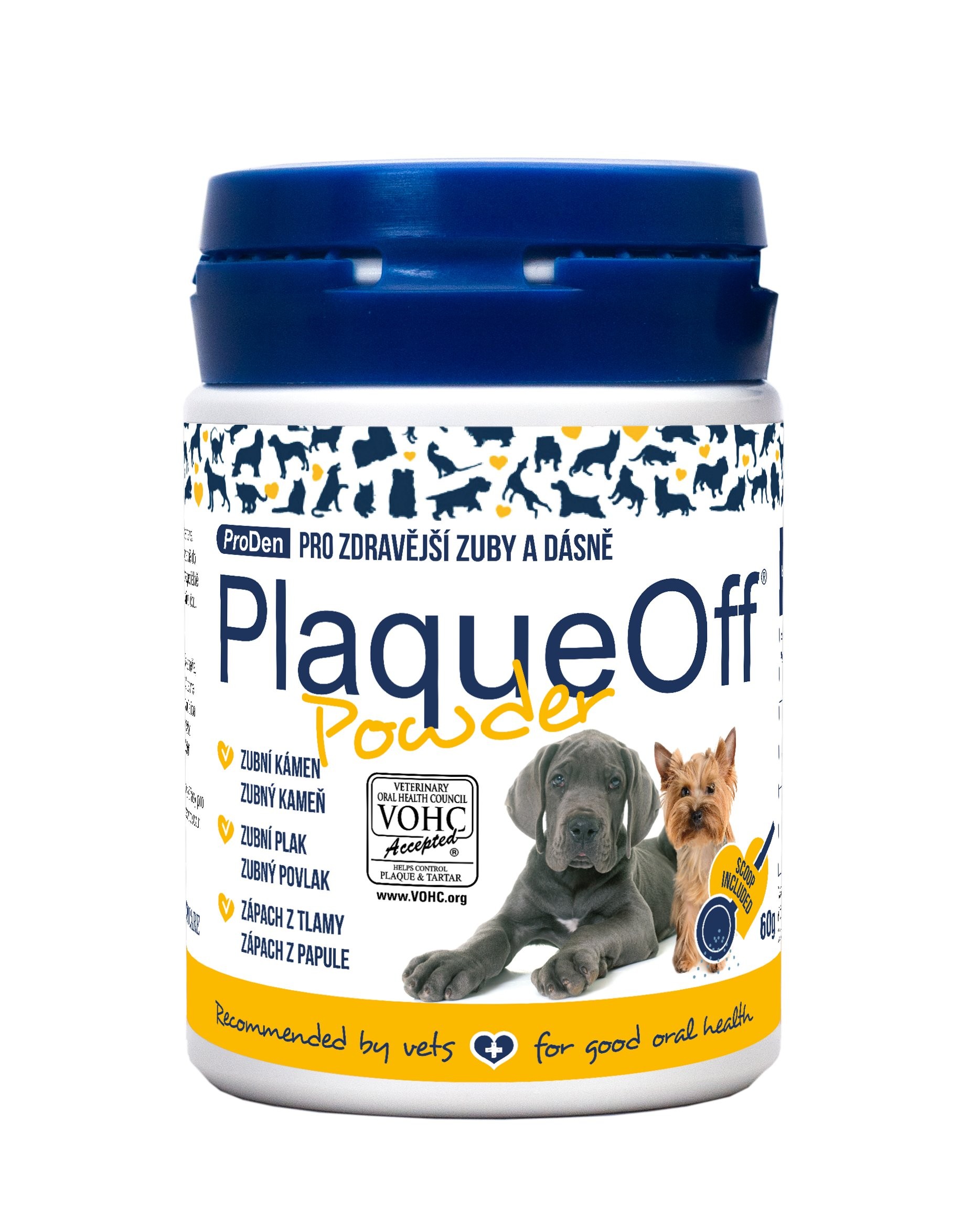 PlaqueOff™ Powder je prelomový prostriedok v starostlivosti o zuby a ďasná psov a mačiek. Významne obmedzuje zubný plak a zubný kameň a odstraňuje zápach z papule. Prípravok je vo forme prášku a preto sa ľahko pridáva do bežnej potravy.