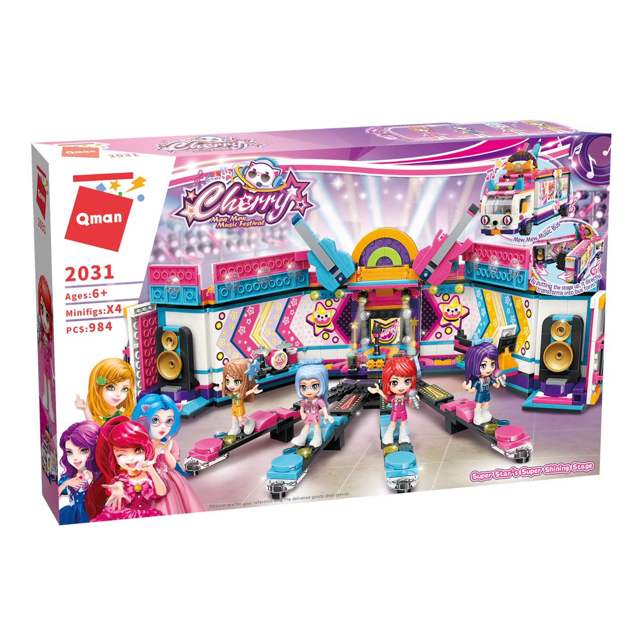 Vyrazte s dívčí kapelou na festival v kočičím náklaďáku a na místě jej hravě rozložte na zářivé pódium pro vystoupení. Vysoce variabilní stavebnice Qman z pestrobarevných plastových kostiček lze kombinovat s podobnými stavebnicemi mnoha dalších významných výrobců. Vyrobeno z kvalitního, nezávadného a odolného, ABS plastu. Baleno v pestře potištěné papírové krabičce. Hlavní vlastnosti:984 dílků a 4 figurkyrozkládací, auto a pódium v jednomkompatibilní se stavebnicemi dalších výrobců