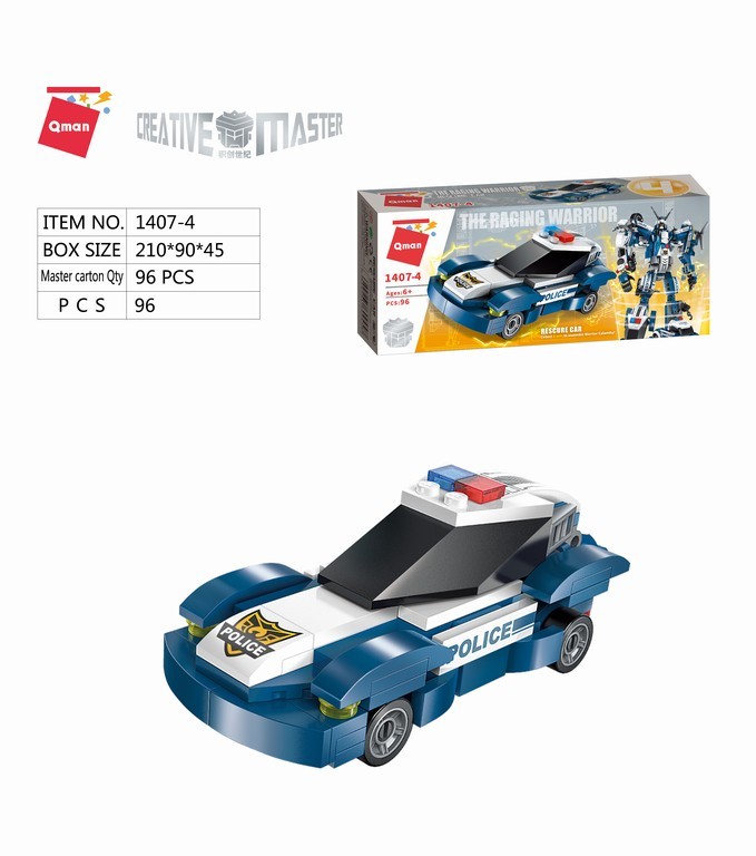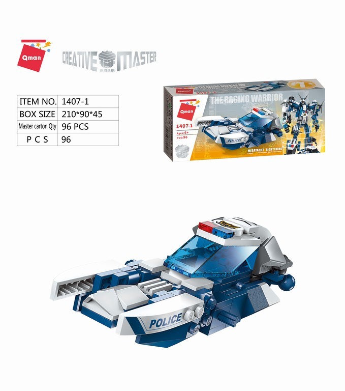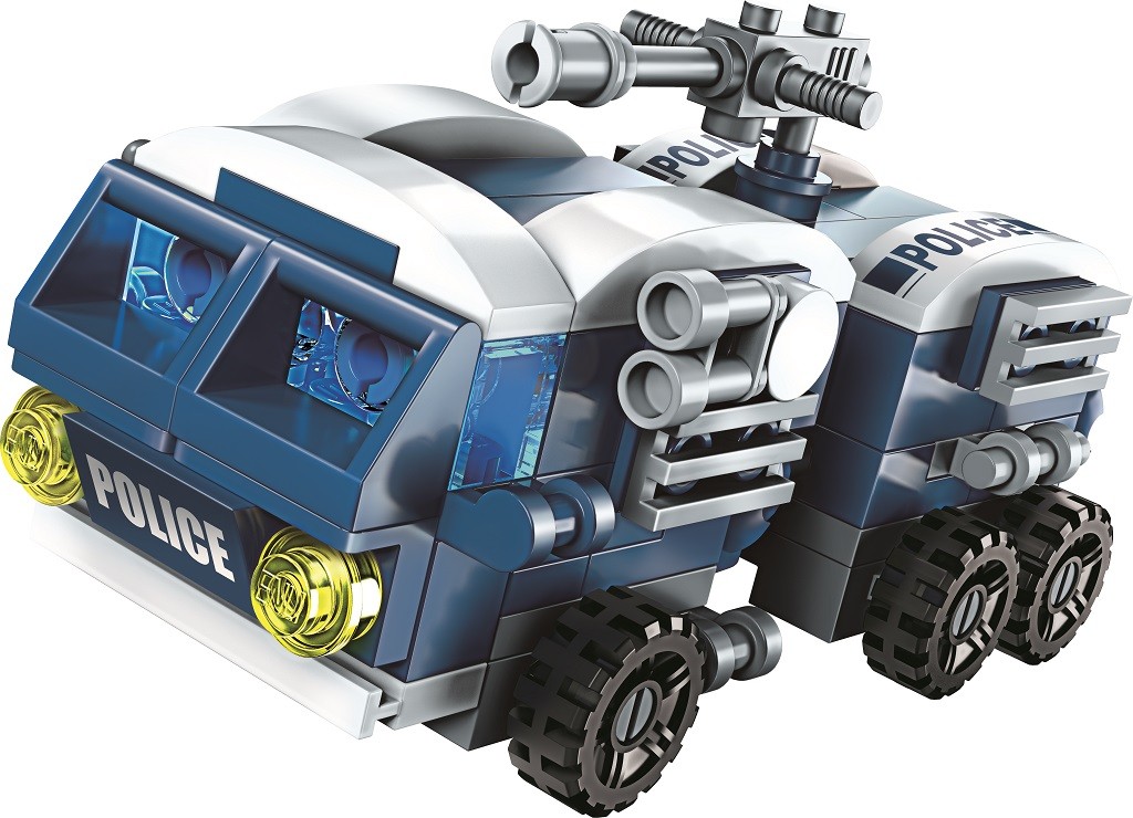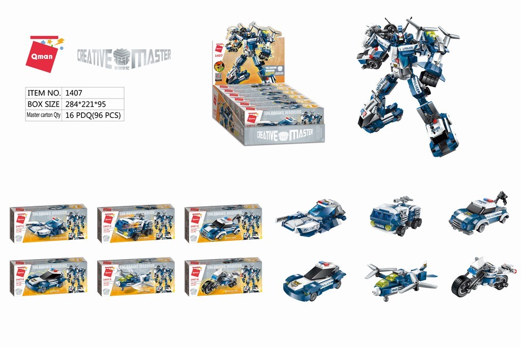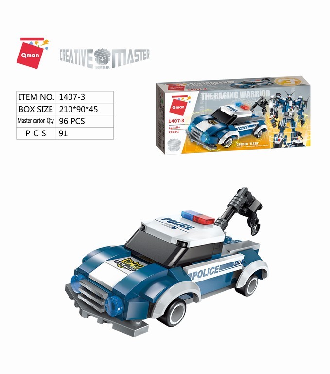 Sbírejte, kombinujte a pozvedejte stavbu i hru na vyšší úroveň! Série samostatných ministavebnic policejní techniky, jejichž kompletací vznikne možnost sestavit velký ucelený model robotického strážce zákona. Vysoce variabilní stavebnice Qman z pestrobarevných plastových kostiček lze kombinovat s podobnými stavebnicemi mnoha dalších významných výrobců. Vyrobeno z kvalitního, nezávadného a odolného ABS plastu. Baleno v pestře potištěné papírové krabičce.   Hlavní vlastnosti:577 dílků celkem, 81–116 dílků jednotlivě2 úrovně složitosti, kompletací série lze sestavit velký modelkompatibilní se stavebnicemi dalších výrobců
