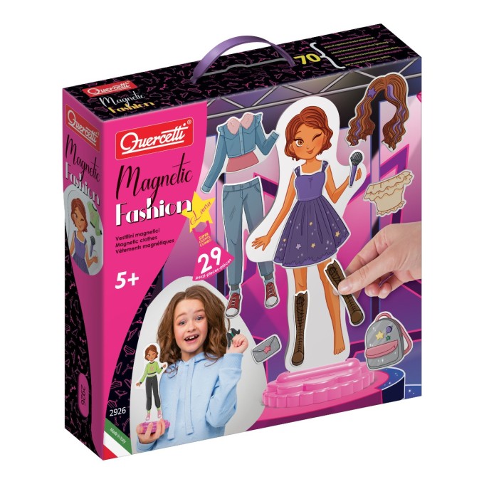 Vytvořte vzhled pro každou příležitost díky velkému množství doplňků! S Magnetic Fashion si užijete opravdu vzrušující zábavu při oblékání panenky Laury. Obsah balení:1 magnetická převlékací panenka1 stojan na panenku29 magnetických kusů oblečení Hlavní vlastnosti: kreativní hračka, která trénuje představivosttéma móda, oblékánípro děti od 5 let