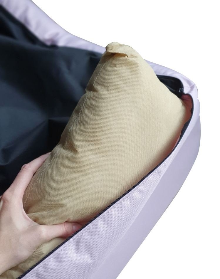 Skladjú sa zo štyroch obvodových vankúšov a jedného stredového vankúša, ktoré je možné jednoducho vybrať a poťach pelechu hodiť do práčky. Mäkké vyplnené dno zároveň tvorí jedinečnú izoláciu proti chladu z podlahy.