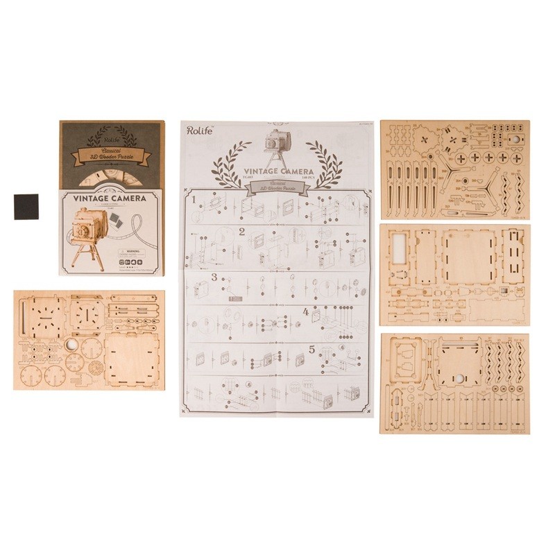 RoboTime dřevěné 3D puzzle Historický fotoaparát
