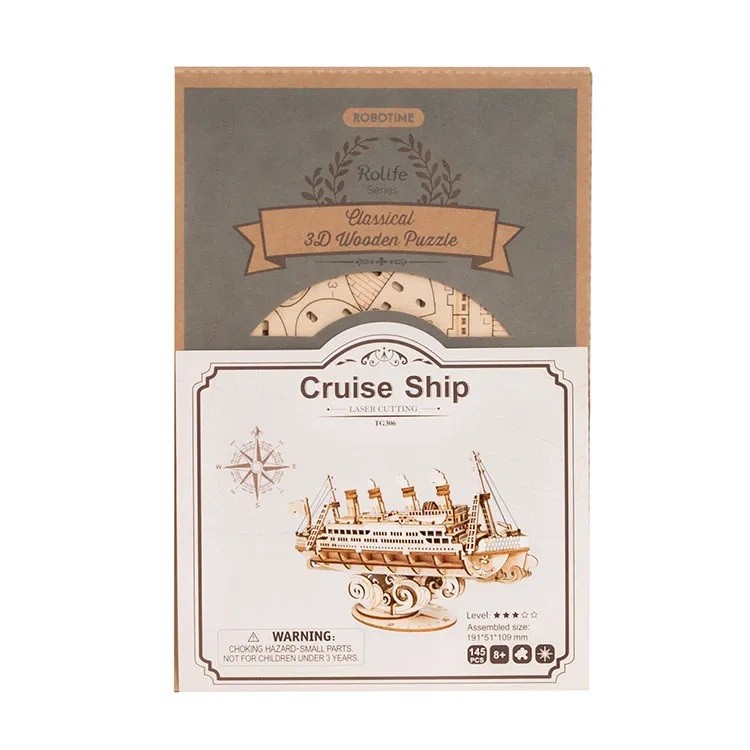 Detailní model zaoceánského parníku. Patří do řady skládaček, které jsou určeny k vystavení, nejsou interaktivní a nemají žádné pohyblivé díly. Skládačka je dodávána v nesloženém stavu, balena v krabici. Vybaveno detailním návodem k sestavení.   Hlavní vlastnosti:145 precizně vyřezaných dílkůnízká obtížnost sestavení