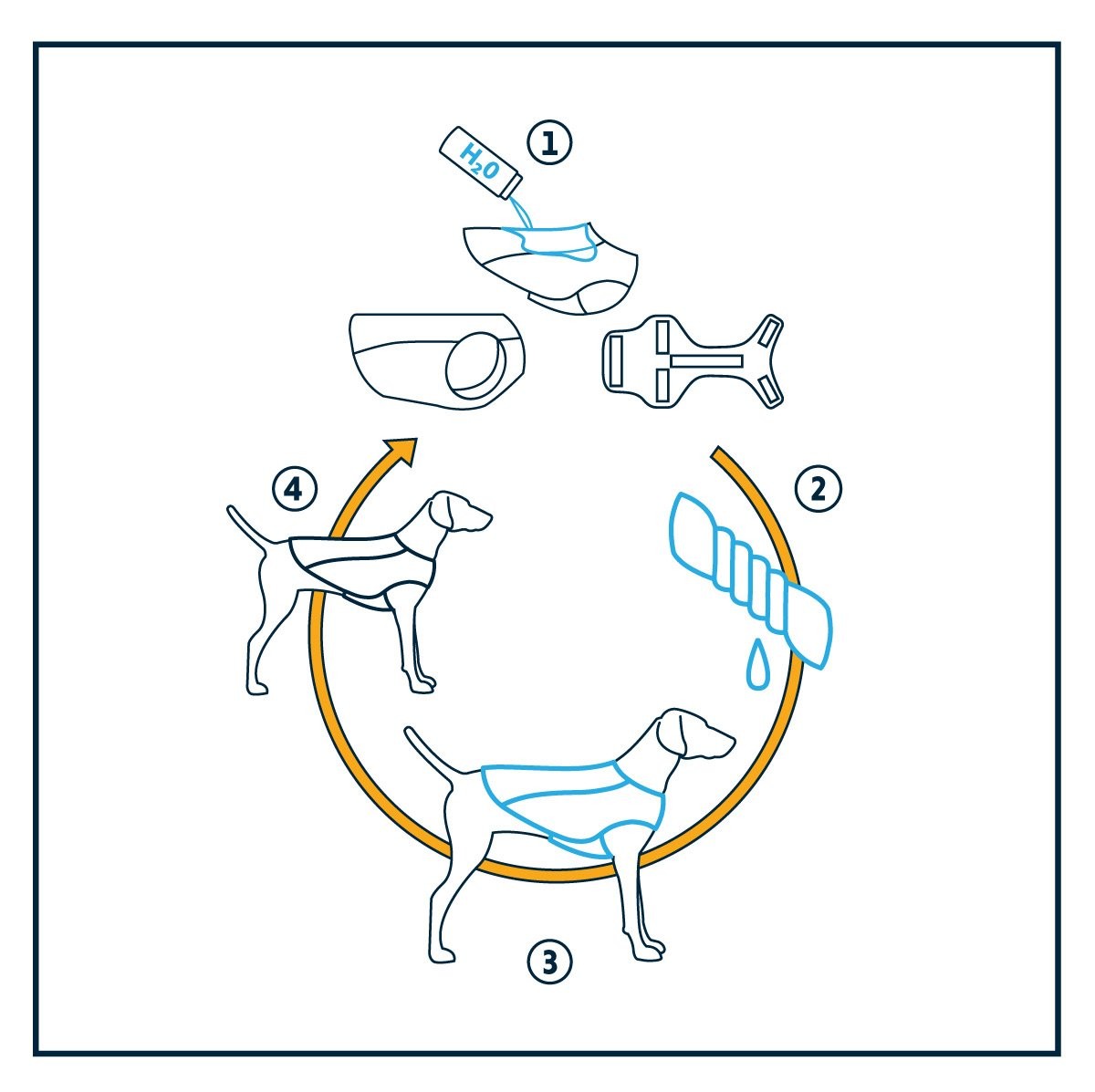 Keď je tieň nízko a ortuť teplomera stúpa vysoko, psy sa môžu spoľahnúť na chladiacu vestu Swamp Cooler, ktorá ich dostane von. Strategický výber materiálov a dizajn ponúkajú riešenia pre výzvy, ktoré prináša objavovanie v teplom počasí. Svetlá tkanina odráža slnečné žiarenie a poskytuje tienenie, zatiaľ čo navlhčenie vesty aktivuje Ruffwear technológiu Swamp Cooler™ Tech pre ten osviežujúci pocit z jazera, ktorý je tiež známy ako chladenie odparovaním. Len ju namočte, nasaďte na svojho psa a choďte. Keď uschne, znova ju namočte, aby sa obnovil efekt chladenia