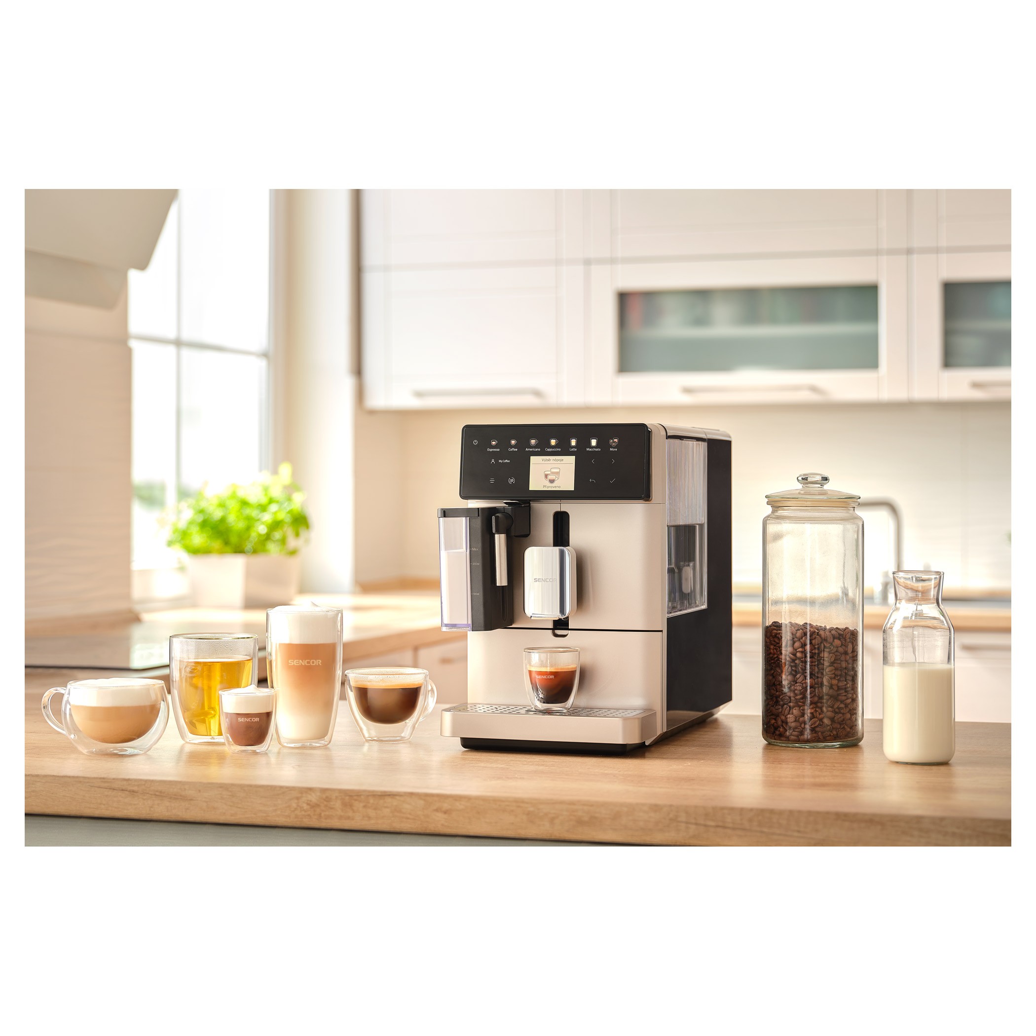 Plne automatický kávovar SENCOR SES 9350CH prináša maximálny komfort pri príprave kávy jediným dotykom. Kombinuje moderné technológie, intuitívne ovládanie a široký výber nápojov.