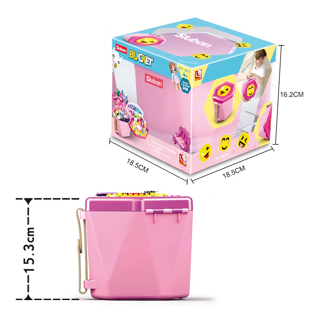 Inovativní stavebnice Sluban je možno kombinovat s podobnými stavebnicemi mnoha dalších významných výrobců. Jsou vyráběny z kvalitního, nezávadného a odolného ABS plastu. Stavebnice je balena v atraktivním přenosném kbelíku, jehož víko lze rozložit a použít jako stavební podložku. Hlavní vlastnosti:kbelík se 2 stavebními podložkami a přihrádkou348 dílků a 2 figurkynízká obtížnostinovativní figurky s otáčivými i výkyvnými částmi tělkompatibilní se stavebnicemi dalších výrobců
