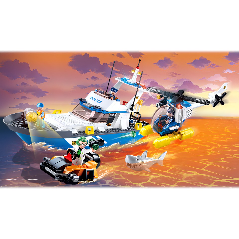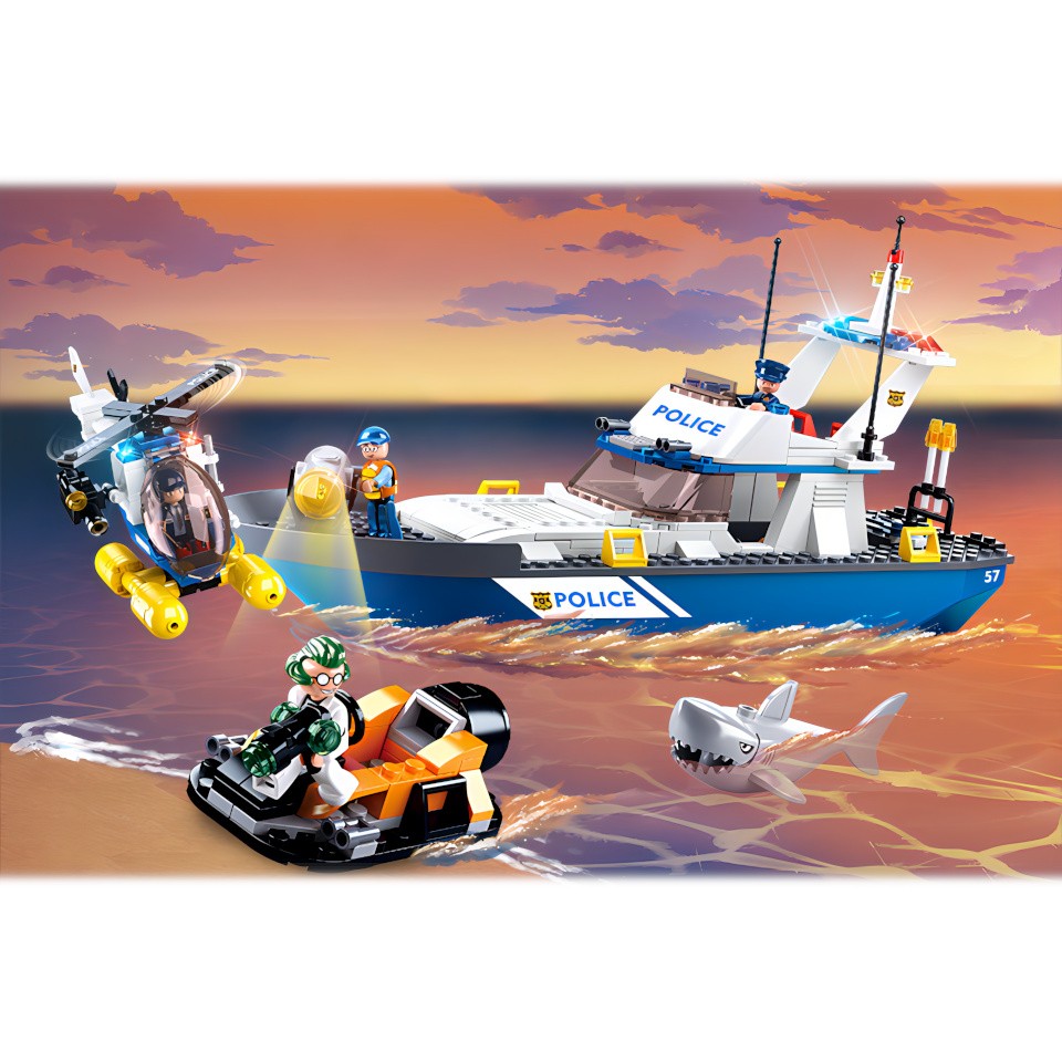Úvod Pre deti Hračky Stavebnice Plastové Sluban Sluban Policie M38-B0657 Loď, vrtulník a zloděj v člunu