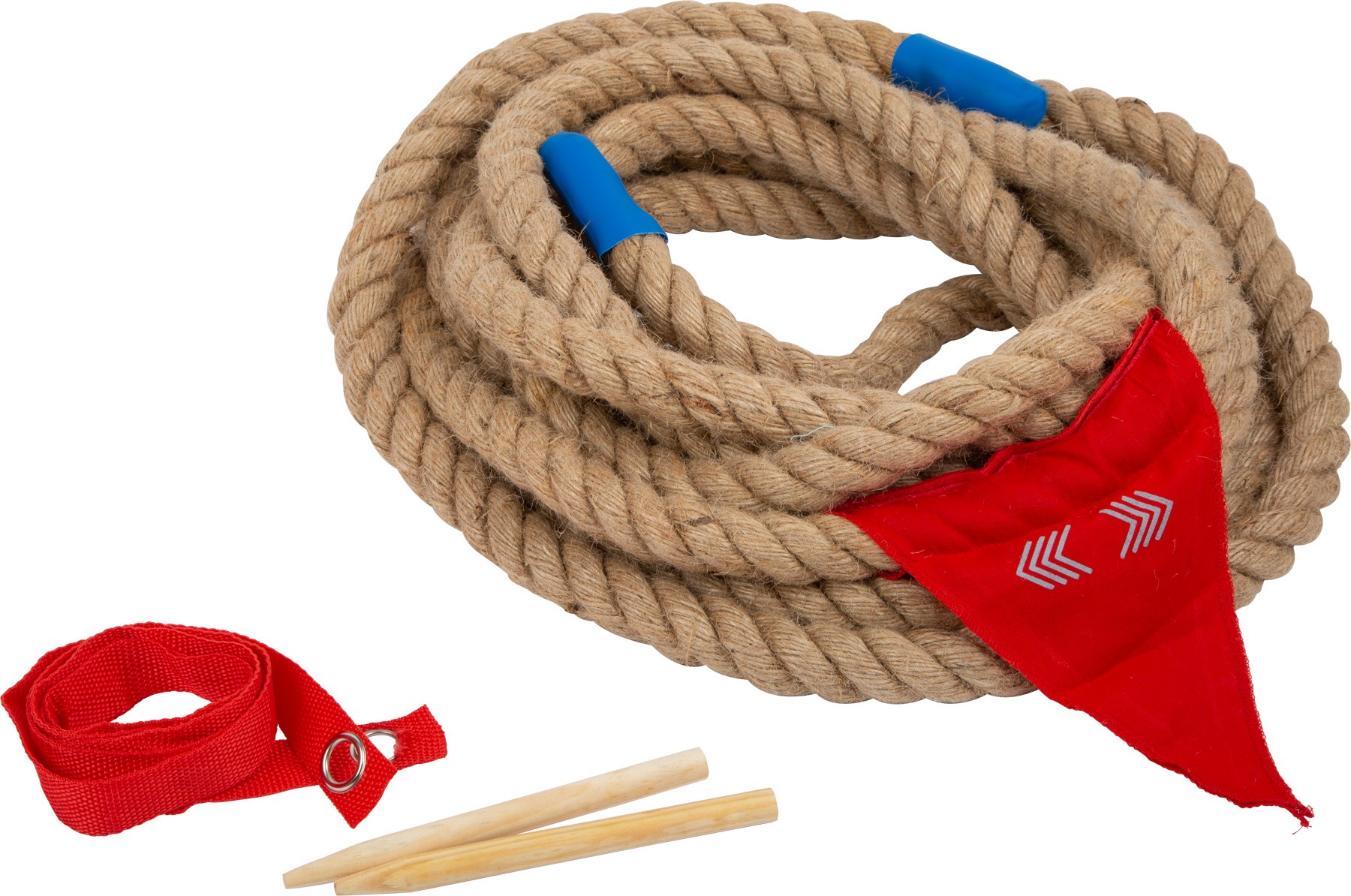 Klasická volnočasová aktivita na táborech! Dva týmy poměří své síly a to s pomocí tohoto odolného lana. Tým, který jako první přetáhne červenou vlajku na laně přes dělící čáru vyhrává. Po hře lano jednoduše uložte zpět do praktického pytlíku se stahovacími šňůrkami. Obsahuje 5 ks příslušenství. Hlavní vlastnosti: podporuje pohybovou aktivituzlepšuje vytrvalostvenkovní hra