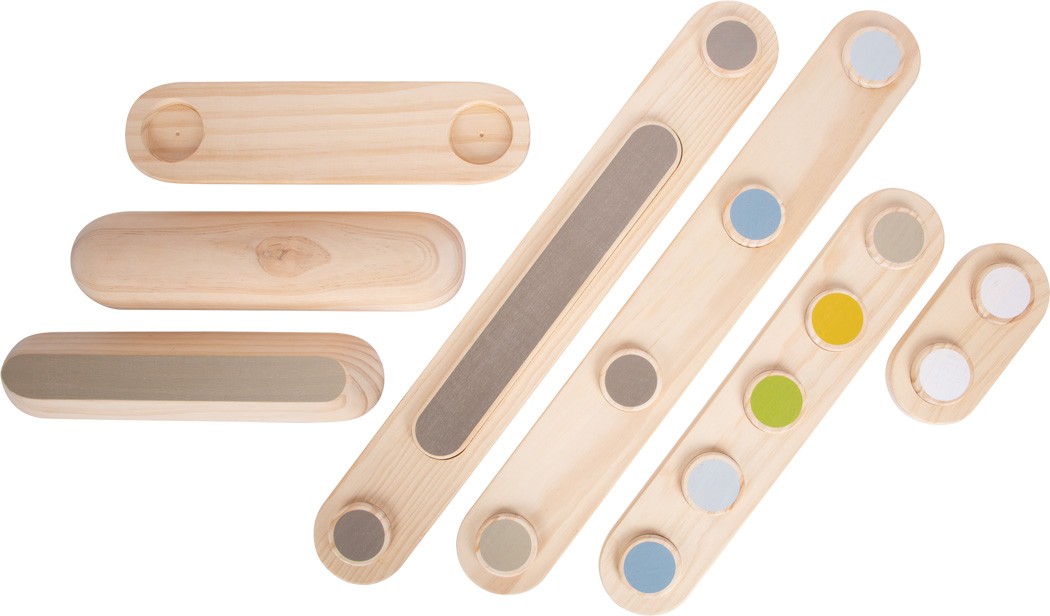 S těmito 7 ks oboustranně zapojitelnými balančními chodníky se vytvářejí jednotlivé trasy a balanční cesty přizpůsobené různým úrovním obtížnosti, které podporují smysl pro rovnováhu. Díky obzvláště jednoduchému otočnému zásuvnému systému, který funguje bez nářadí, mohou děti popustit uzdu své kreativitě. Díky jednoduchému designu a jednoduchému tvaru v kombinaci s moderními barvami a množstvím přírodního dřeva se kladiny dokonale přizpůsobí každému obývacímu i dětskému pokoji. Obtížnost cesty lze přizpůsobit schopnostem a věku dětí. Balanční úsek "roste s dětmi". Pohybové hračky jsou absolutní trend a neměly by chybět v žádné řadě motorických a pohybových hraček. Vhodné také i pro terapeutické účely. Balanční chodníky lze velmi dobře kombinovat s Balančními kameny Adventure (LE12242) a lze je ideálně doplnit dalšími produkty z řady "Adventure". Hlavní vlastnosti: balanční hra pomáhá s rozvojem rovnováhy a koordinaceděti podpoří v důvěře ve vlastní schopnosti jednoduchý design vhodné i pro terapeutické účely