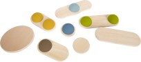Největší kamen: 4 cm, Ø20 cm Nejmenší kamen: 4 cm; Ø9,5 cm Věk: 3+ Materiál: dřevo, guma Celý popis