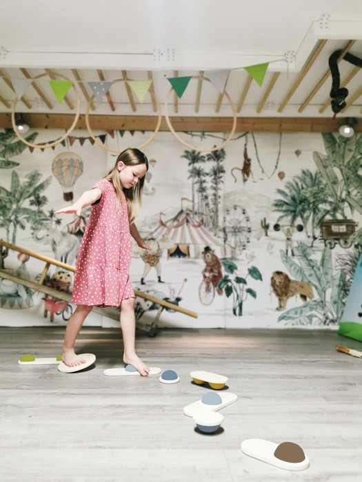 Oboustranné balanční kameny z pevného dřeva, polokoule mají jinou pozici na každém dílku a jsou vyrobeny z pevné pěny. Náročnost může být upravena, možno používat celou sadu nebo jen její části. Pokud sadu doplníte o další produkty z řady Adventure, můžete si postavit opičí dráhu! Hra trénuje rovnováhu a koordinaci, hravě děti podpoří v důvěře ve vlastní schopnosti. Také vhodné pro terapeutické účely. Balanční kameny promění dětský pokoj během sekund v zemi dobrodružství. Jednoduchý design a tvary, mnoho přírodního dřeva, na tyto balanční kameny je radost pohledět. Hlavní vlastnosti: Hračka z dřeva a gumyBalanční hra pomáhá s rozvojem rovnováhy a koordinaceGumové polokoule mají na každém dílku jinou pozici