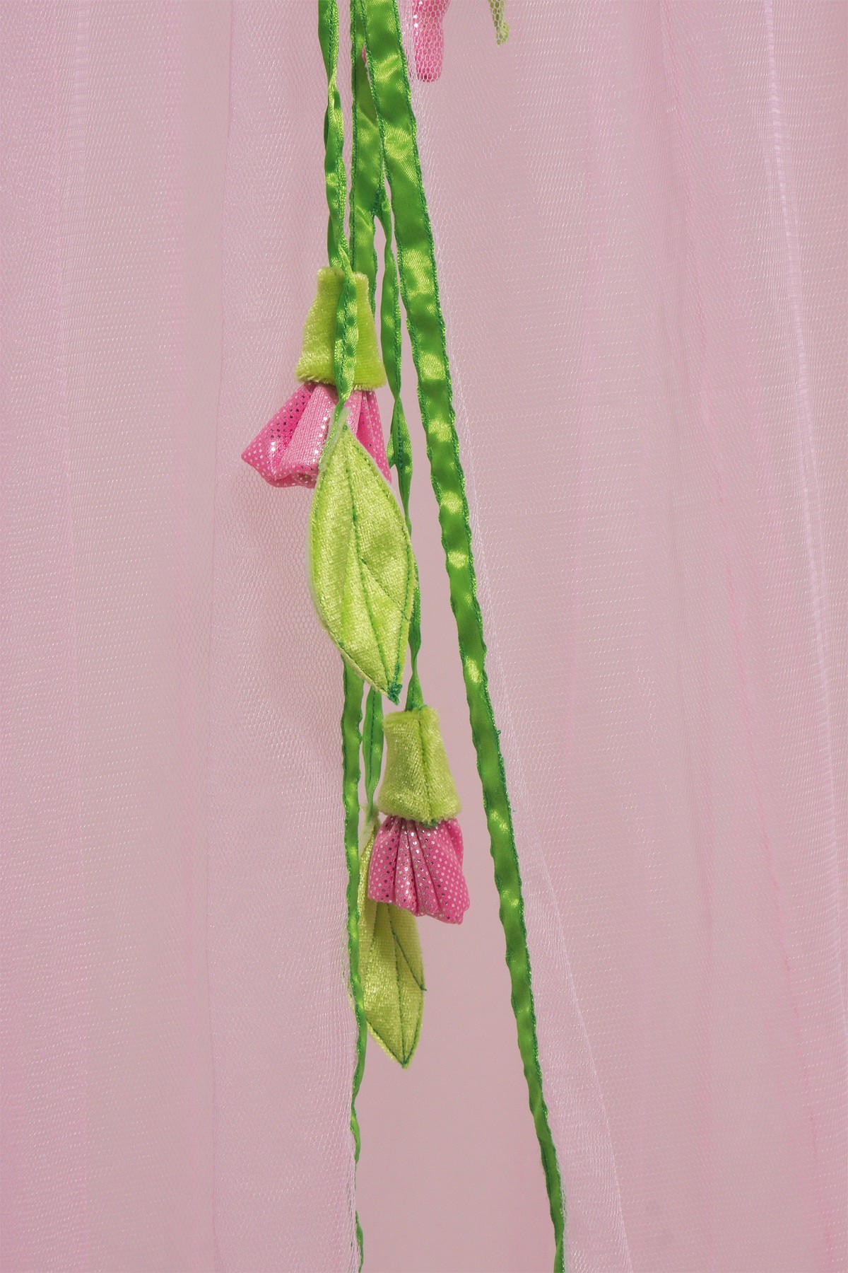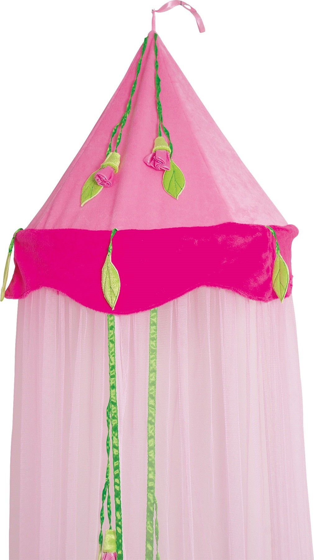 Tento růžový baldachýn promění každou postýlku v oázu snů. Stříška je zdobená plyšovými okraji a květinami růží z látky. Malým princeznám vykouzlí zákoutí ke hře či odpočinku. Baldachýn lze v létě použít jako moskytiéru. Hlavní vlastnosti: baldachýn zdobený růžemipoutko na zavěšení