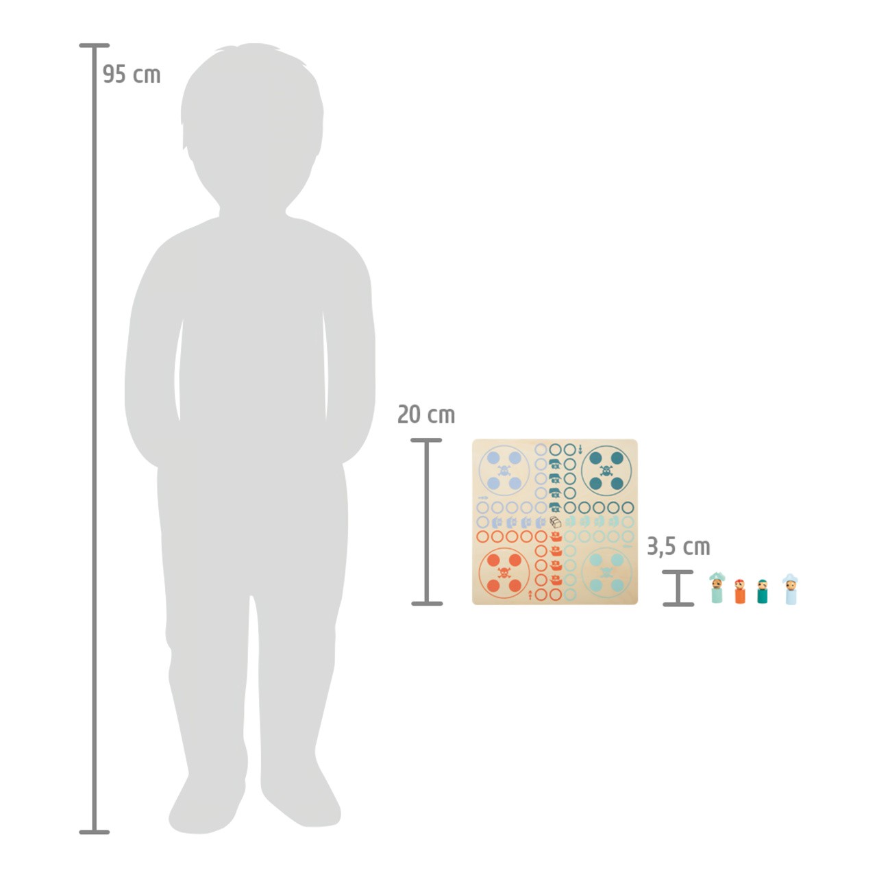 Rozměry: 20x20x1 cm, výška postavy: 3,5 cm, Ø 1 cm Věk: 4+ Materiál: dřevo Celý popis