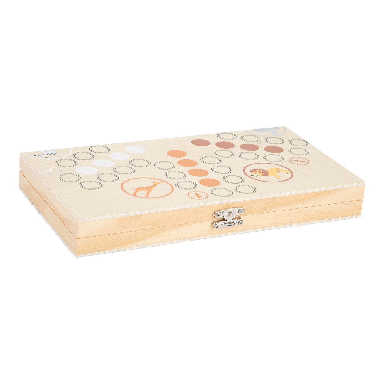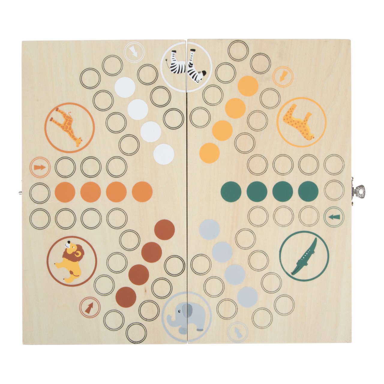 Skvělá zábava až pro 6 hráčů každého věku! V této klasické hře vyrobené ze dřeva musíte dostat svá zvířátka ze savany do domečku. Zebra, žirafa, krokodýl, slon, leopard a lev vypadají skoro jako praví. Tyto figurky jsou vhodné pro děti, jsou dřevěné a mají plyšové prvky. Herní deska je praktická, po složení se z ní opět stane úložný box. Dvě herní kostky vám ukáží, o kolik polí se můžete posunout. Klasická stolní hra v trendy designu, která děti naučí počítat, poznávat barvy a zvířata. Děti se také naučí prohrávat. Ideální také na cesty. Hlavní vlastnosti: pro 2–6 hráčůherní deska, 24 figurek a 2 kostkypraktické balení