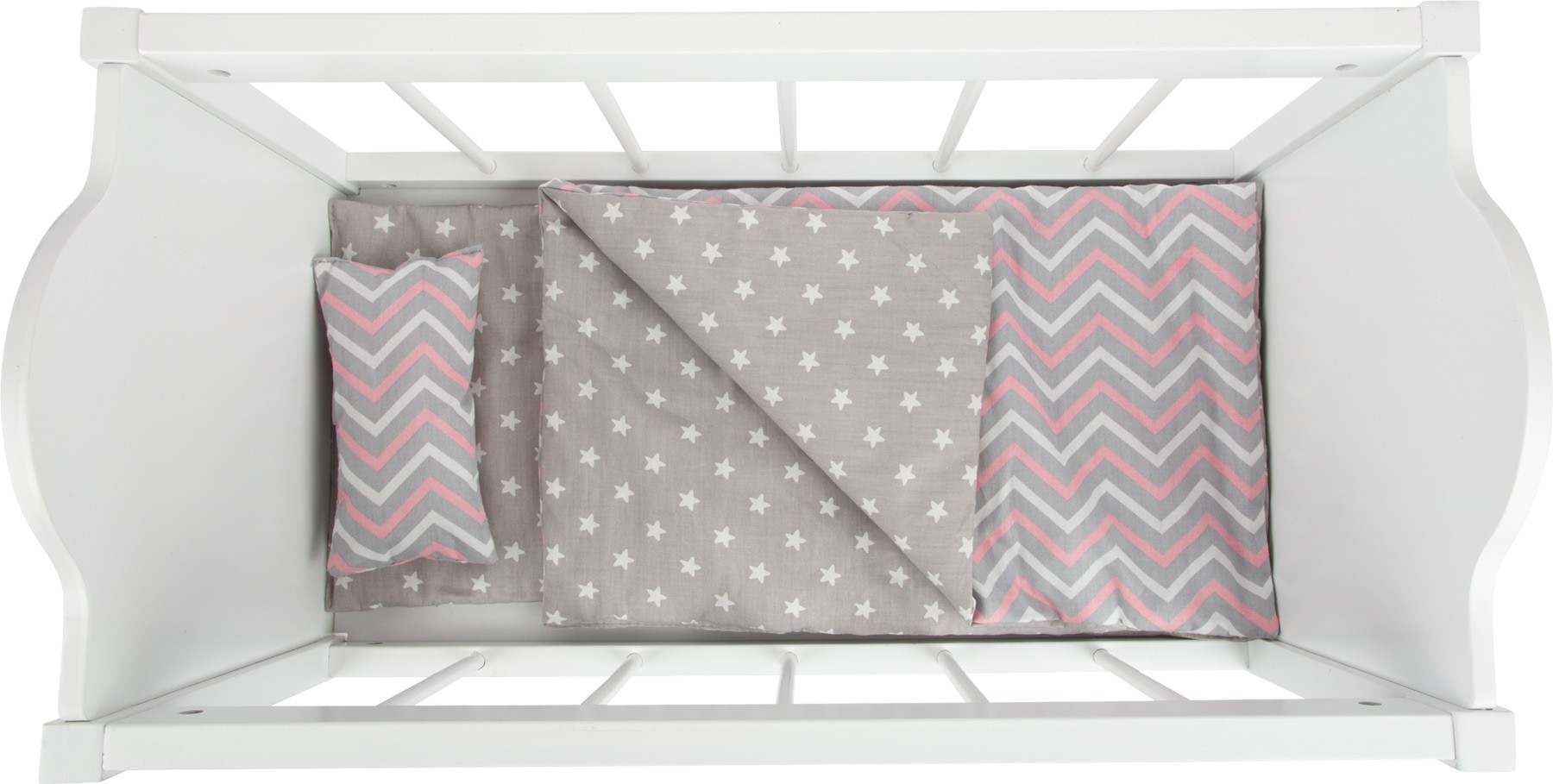 Rozměry: 50x30x34 cm Věk: 3+ Materiál: masivní dřevo, látka Včetně povlečení Vhodné pro panenky do 47 cm Celý popis
