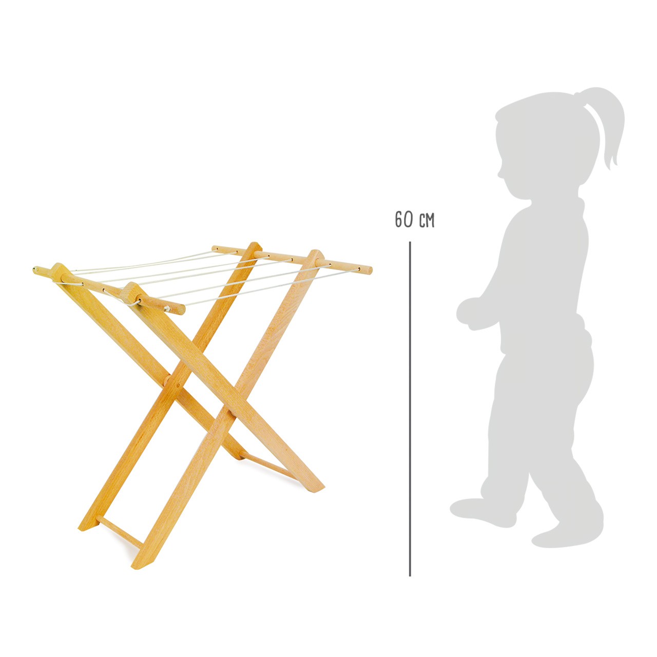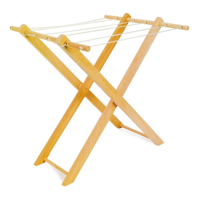 I panenky si občas ušpiní šaty, které se pak musí vyprat a usušit. Nepostradatelný doplněk každé dětské pračky a multifunkční kuchyňky! Dřevěný sušák na prádlo je navržený tak, aby na něj i menší děti snadno dosáhly a mohly se cítit stejně užitečně jako dospělí při domácích pracích. Díky skládací konstrukci je velmi skladný a snadno přenosný. Je vyrobený z masivního dřeva, a může proto nabídnout vysokou odolnost a dlouhou životnost, zároveň je díky přírodní úpravě velmi univerzální. Hlavní vlastnosti: skládací a univerzálnírobustní provedení z masivního dřeva