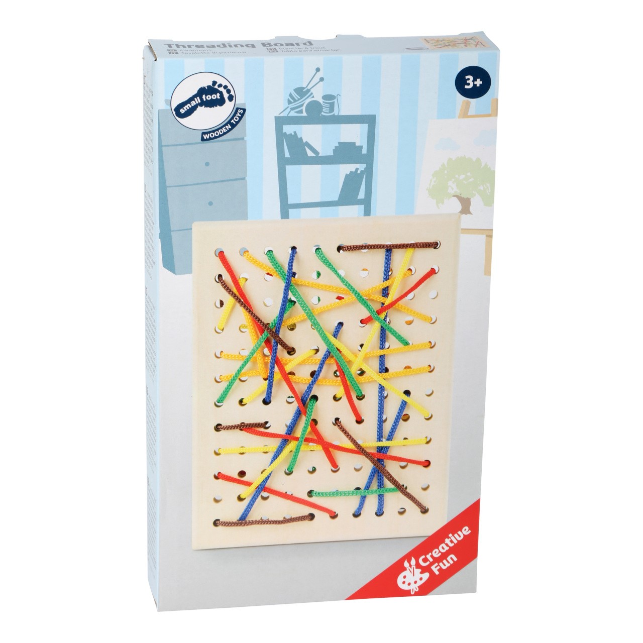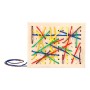 Kdo se v tom zorientuje? Provlékejte barevné provázky přes dřevěnou desku s otvory. Provlékejte jen tak, nebo do různých tvarů, obrazců či vzorů. Také pomáhá připravit se na zavazování tkaniček. Hlavní vlastnosti: obsahuje dřevěnou desku a barevné šňůrky trénuje kreativitu a jemnou motoriku