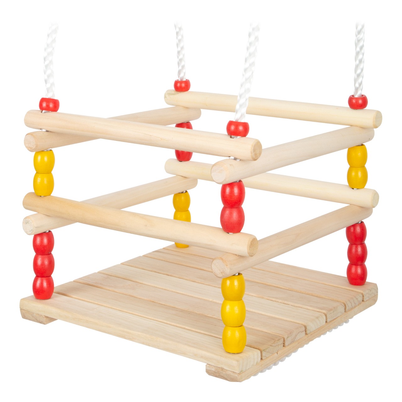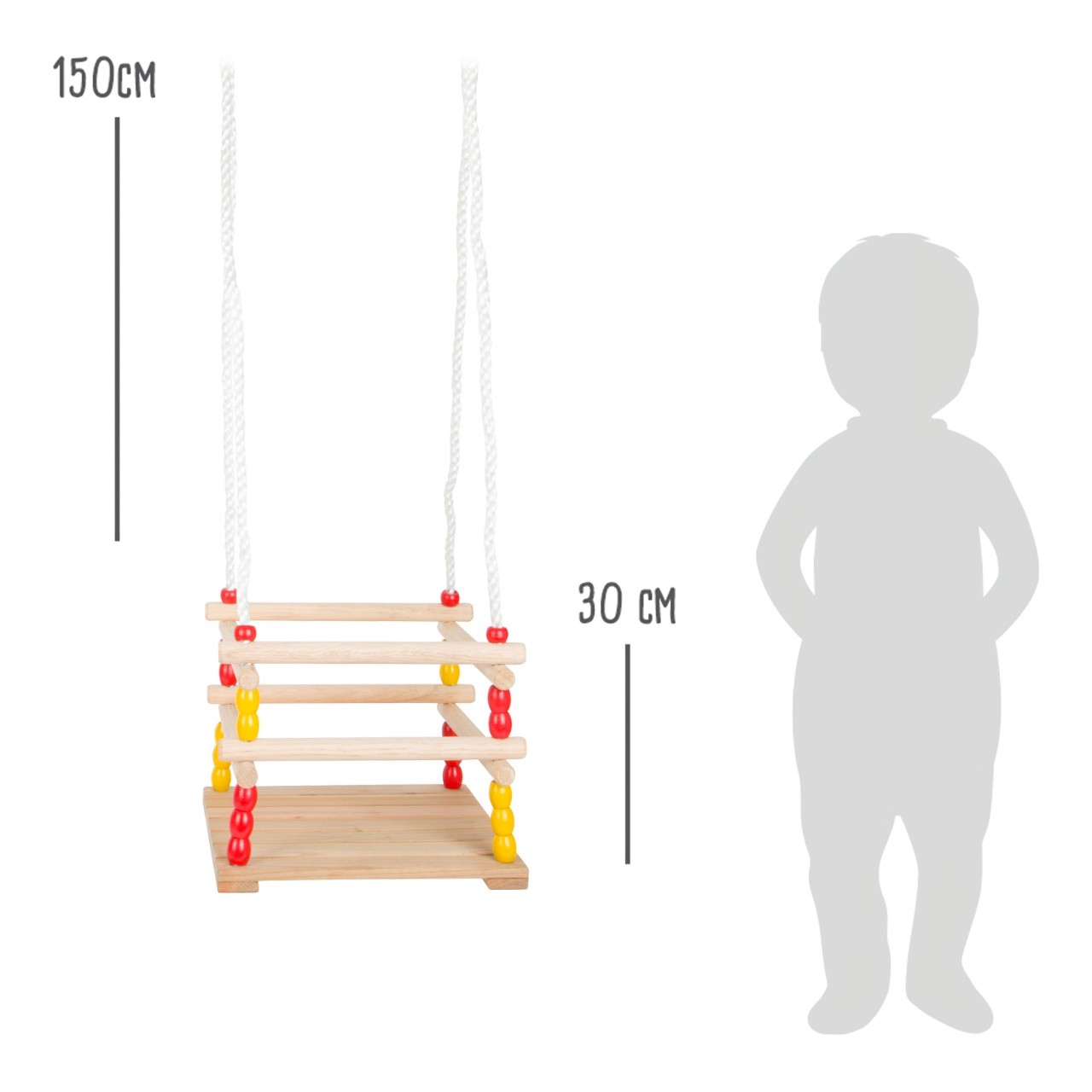 Dřevěná houpačka s hrazením, o které se děti mohou opřít a pevně se jej přichytit. Pevná plastová lana jsou na koncích opatřena kroužky k zavěšení a jejich délku lze pomocí kovových průvleků snadno nastavit. Houpačka je vyrobena z pečlivě opracovaného masivního dřeva a je dodávána ve složeném stavu, připravena k zavěšení. Hlavní vlastnosti: hrazení pro jistou a bezpečnou hrunastavitelná délka lannosnost 30 kg
