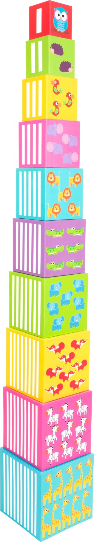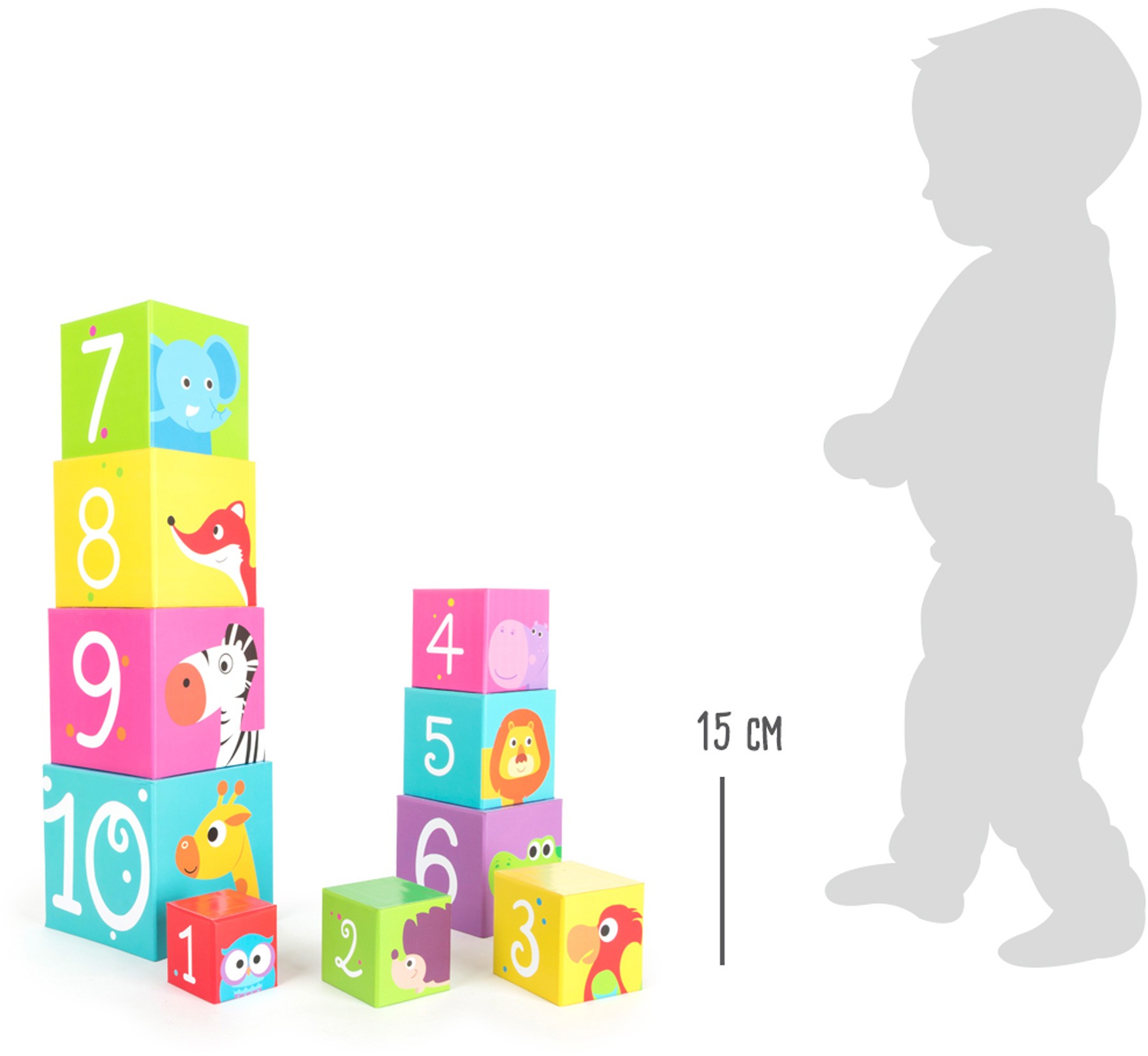 Jak vysoko dokážete skládat? Tato veselá zvířátka zvou všechny malé stavitele ke skládání. Deset lehkých a stabilních kostek je vyrobeno z lepenky. Mají barevný potisk se zvířátky a čísly. Děti si s nimi procvičí motoriku a soustředěnost. Kostky můžete uložit do sebe, nezaberou tak mnoho místa. Děti si procvičí rozpoznávání zvířat i čísel. Hlavní vlastnosti: duté kostky, můžete je uložit do sebeprocvičují motoriku a soustředěnostpomáhají s rozpoznáváním čísel, barev a zvířatvyrobeno ze 100% FSC® dřeva Značka a certifikát FSC® (Forest Stewardship Council) zaručuje, že dřevo, ze kterého byl produkt vyroben, nebylo vytěženo nelegálně a pochází z lesů obhospodařovaných šetrným či přírodě blízkým způsobem, ve kterém jsou dodržovány přísné environmentální a sociální požadavky. Značka FSC® na výrobku znamená, že svým nákupem pomáháte chránit lesy a podporujete šetrné, odpovědné či přírodě blízké hospodaření, díky kterému jsou naše lesy stabilnější, zdravější, mají přirozenou druhovou skladbu a lépe odolávají negativním následkům klimatických změn.