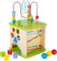 Stabilní dřevěná kostka na hraní, vkládání a provlékání je oblíbenou hračkou, která trénuje motorické dovednosti a porozumění tvarům, číslům a barvám. Malé bloky a kuličky hozené dovnitř se dají snadno převzít přes malé dvířka vyskytující se vespod. Hlavní vlastnosti: multifunkční aktivity (motorická kostka)rozvíjí jemnou motoriku a soustředění