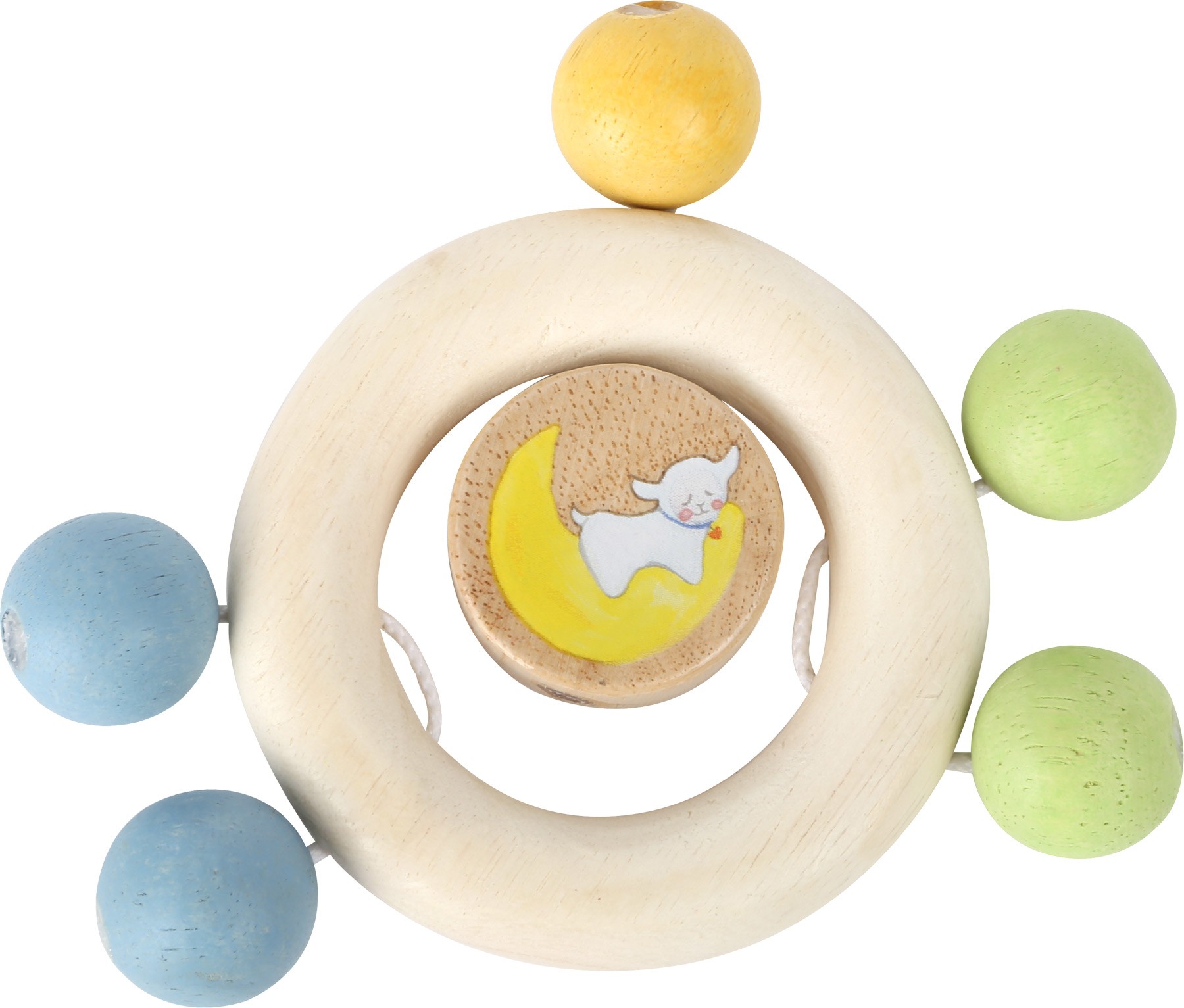 Dřevěný kroužek dobře padnoucí do dětských rukou je opatřen korálky. Při zatřesení korálky o kroužek chrastí. Vyrobeno z vysoce kvalitního dřeva a je lakováno lakem odolným proti slinám. Hlavní vlastnosti: rozvíjí motorické dovednosti a sluchCertifikát zdravotní nezávadnosti - bez toxických látek