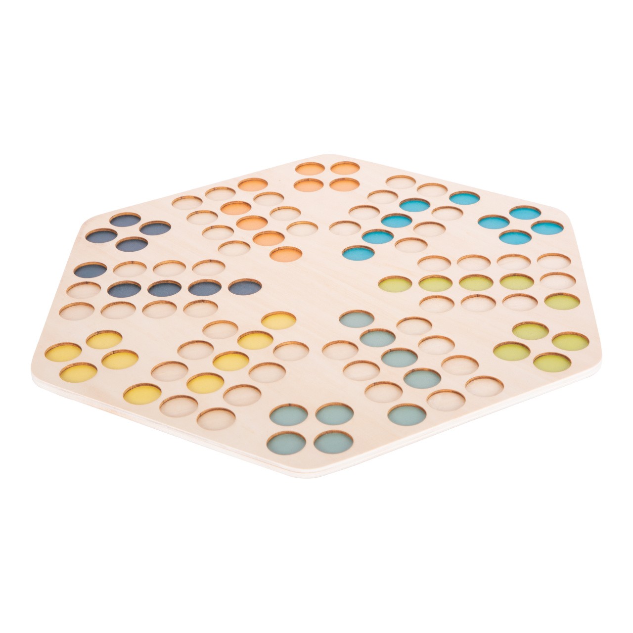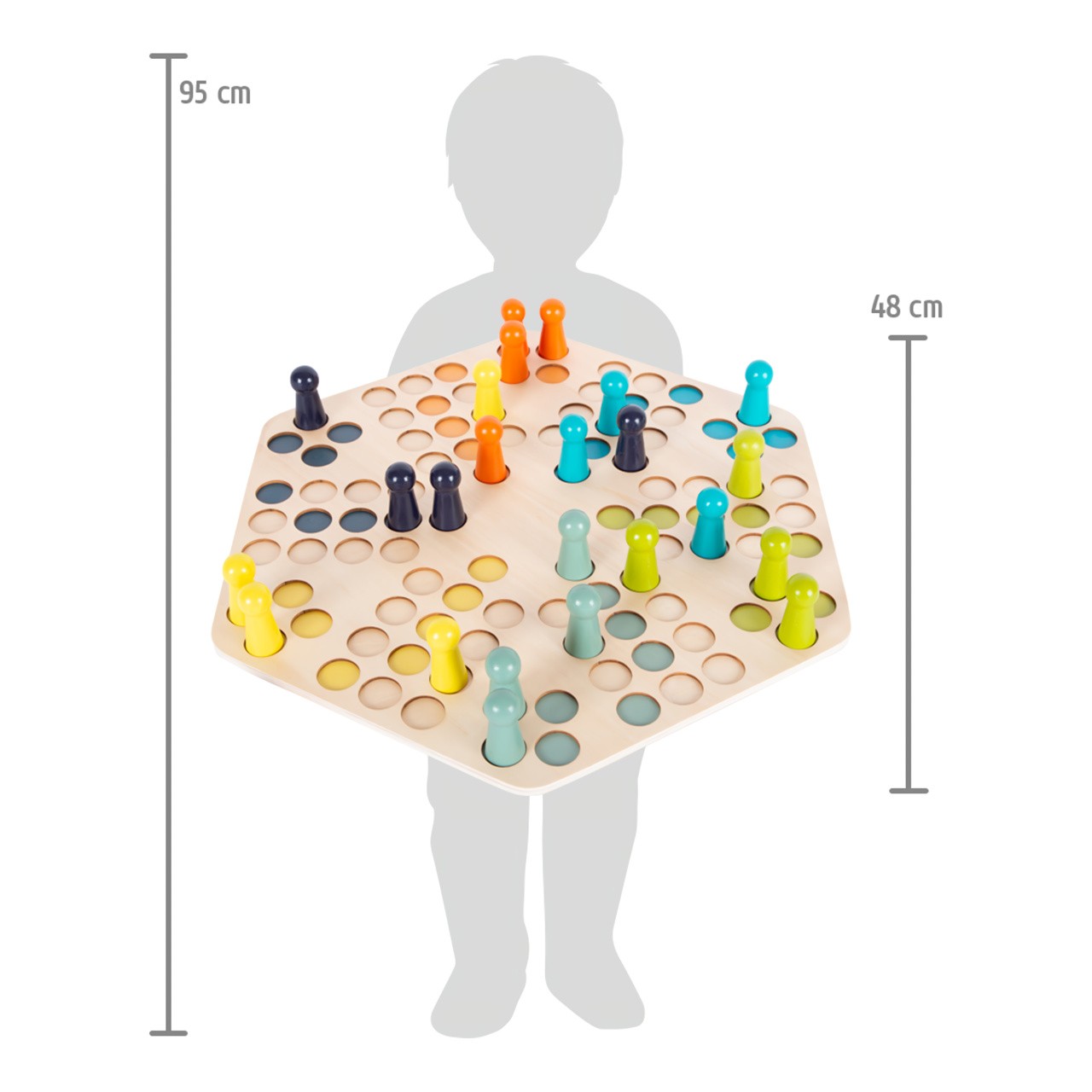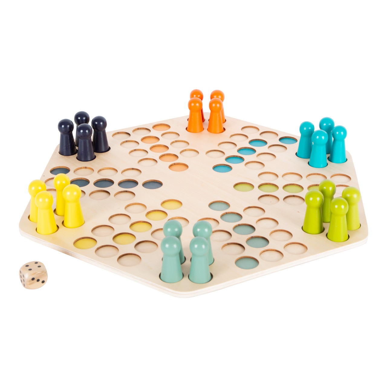 Člověče nezlob se pro 6 hráčů na velké herní desce. Všech 6 hráčů zde musí udržet emoce na uzdě. Velké figurky pro malé nebo třesoucí se prsty. Hlavní vlastnosti: hra vhodná až pro 6 hráčůrozvíjí logické myšlení dětí