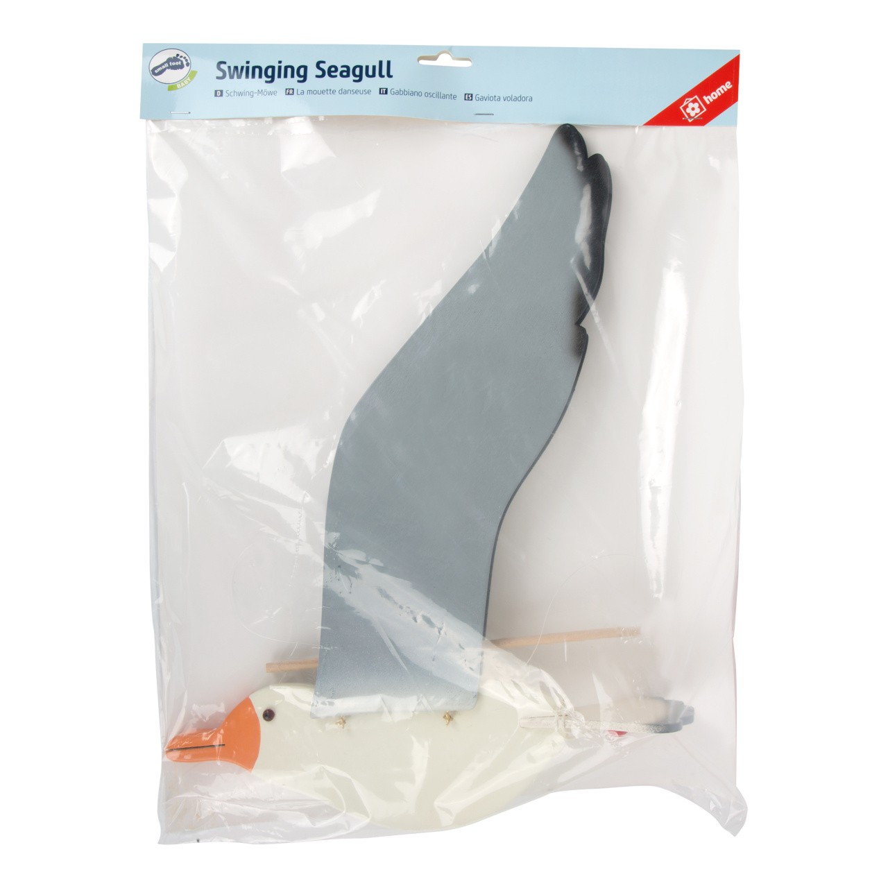 Velký dřevěný racek rozpíná křídla do šířky cca 74 cm. Zatažením za šňůrku s korálkem se jeho mohutná křídla dají do pohybu. Letí! Kam poletí a co tam uvidí je otázkou Vaší fantazie. Hlavní vlastnosti: vyrobeno z kvalitního pevného dřeva dekorativní prvek