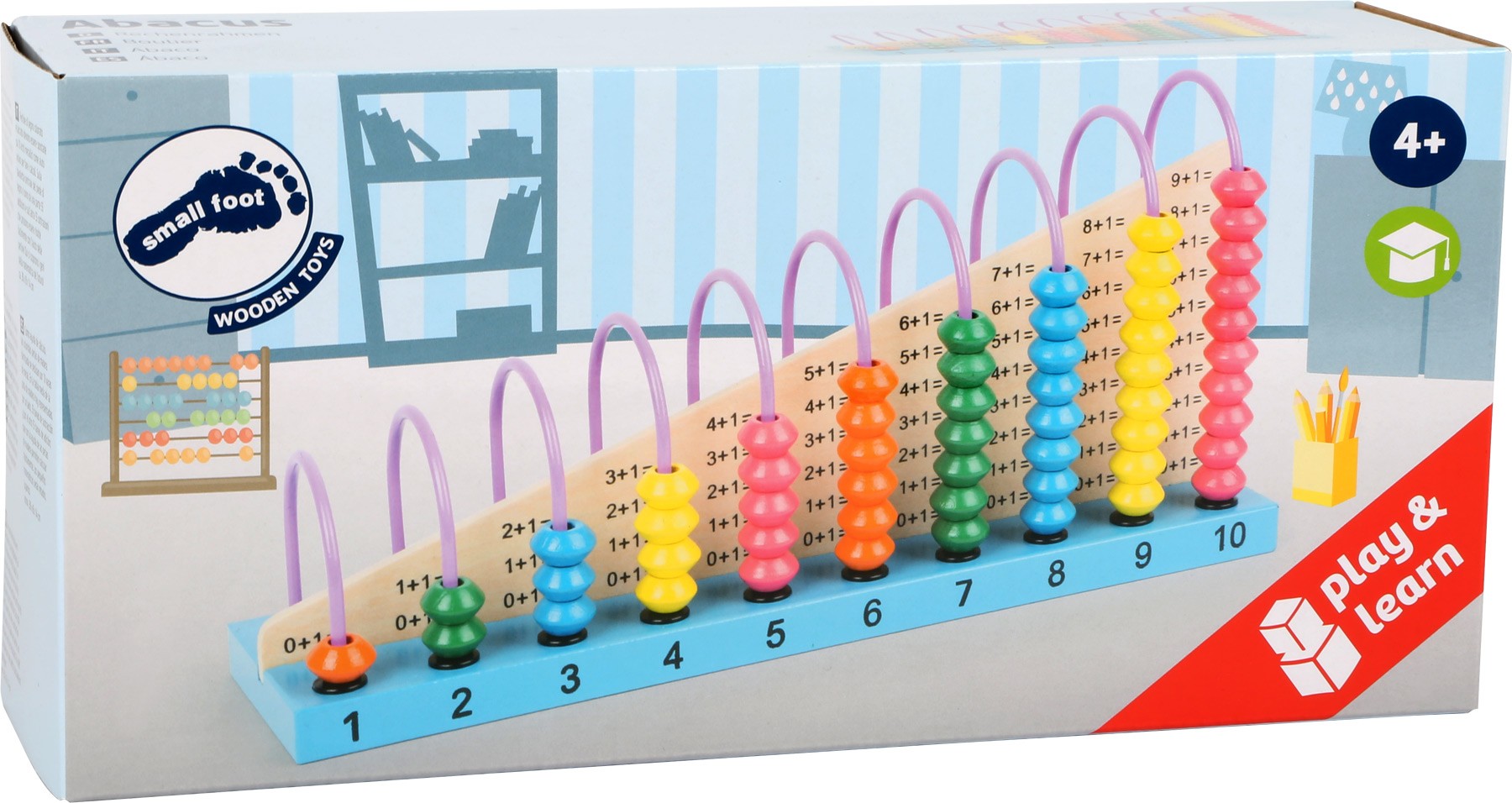 Na deseti obloucích jsou barevné korálky, které poslouží jako počítadlo. Sčítání na jedné a odčítání na druhé straně. Jak rychle dokážete vypočítat všechny příklady? Výzva pro malé matematiky. Hlavní vlastnosti: barevné korálky110 příkladůprocvičuje sčítání i odčítání