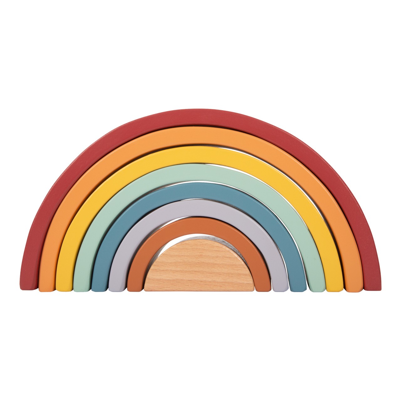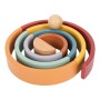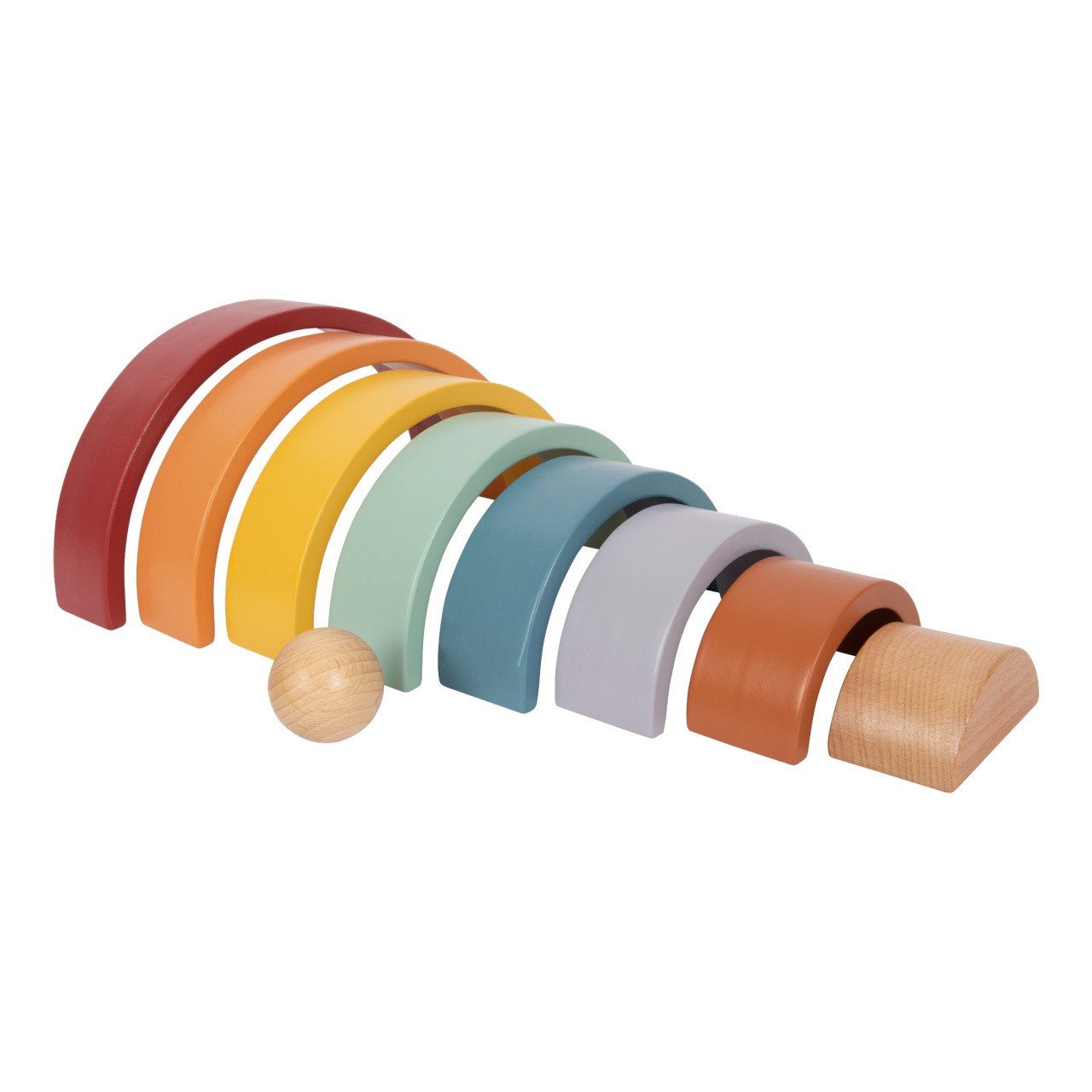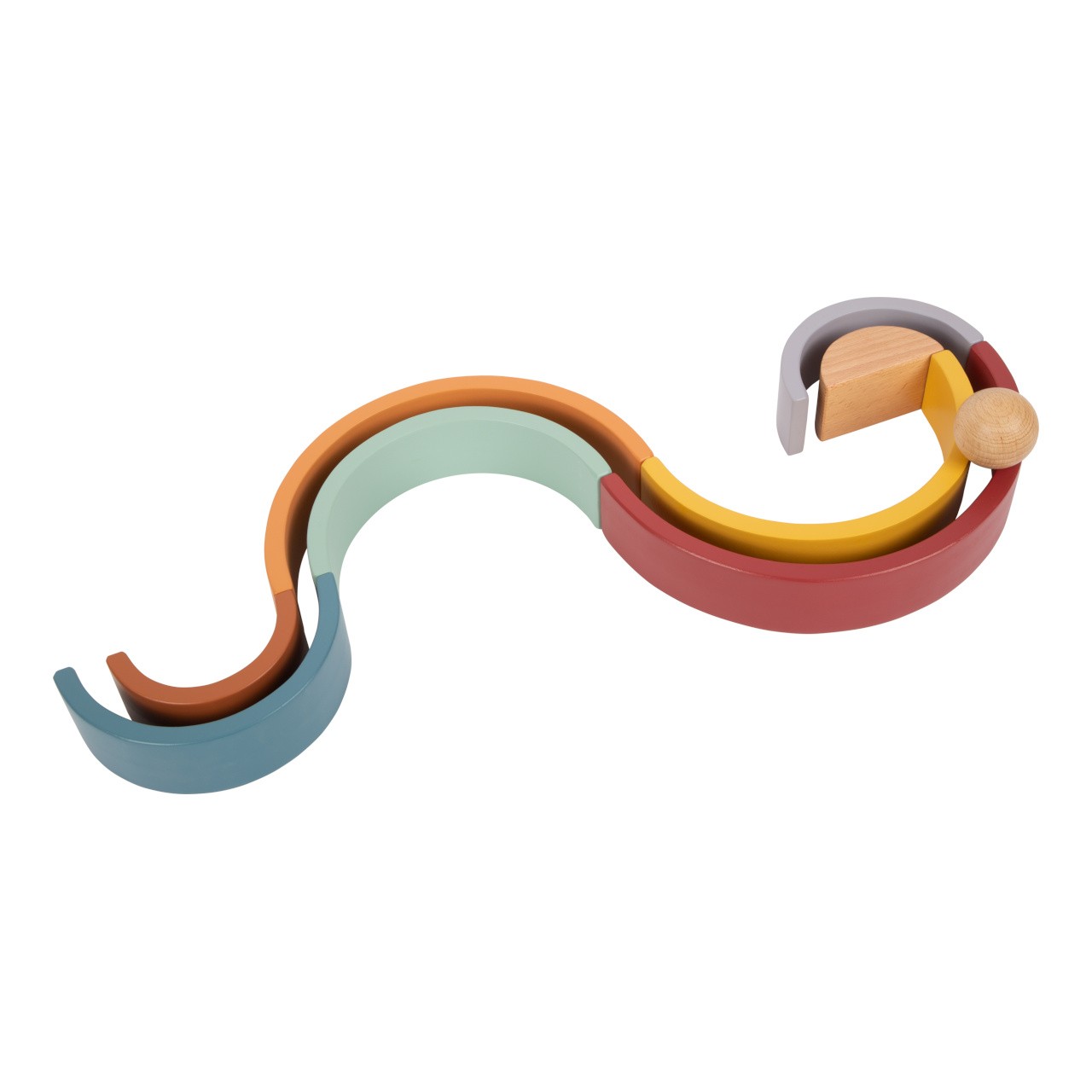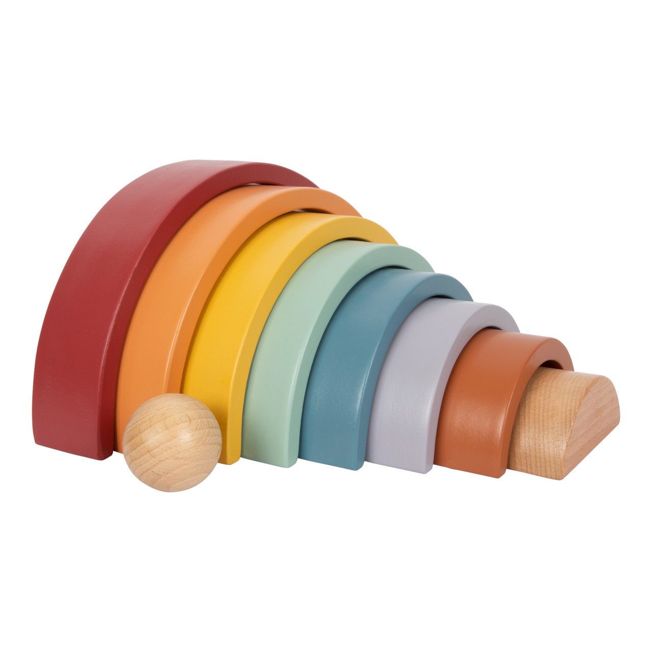 Která barva je nejkrásnější? Dřevěnou duhu doplňuje dřevěná kulička. Tato robustní duha vyrobená ze dřeva včetně dřevěné kuličky v přírodní barvě je ideálním společníkem pro batolata. 8 dřevěných oblouků v trendových barvách duhy, lze použít různými způsoby k třídění, stavění nebo skládání. Zapůsobí na děti i rodiče svým přirozeným dojmem a obzvláště krásným vzhledem. Umožňuje volnou hru podle Montessori pedagogiky a zajišťuje, že se fantazii při hraní meze nekladou - pro děti všech věkových kategorií! Ti nejmenší nahlédnou do teorie barev a naučí se poznávat barvy. Duhové "Safari" je také ideální do každého dětského pokoje a je skutečným poutačem. Hlavní vlastnosti: univerzální oblouky ze dřeva s příjemnou haptikoumoderní barevné schémakulička z přírodního dřevavhodné pro hraní metodou Montessoripomáhá s porozuměním rozdílným velikostem a barvámděti mohou stavět tunely, překážkové dráhy a bludiště